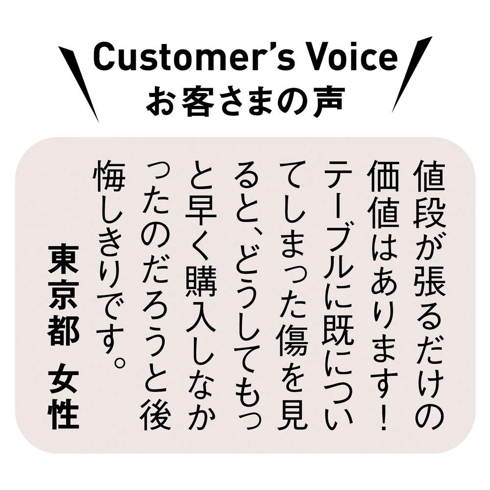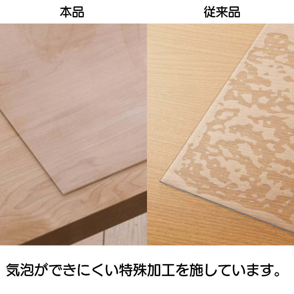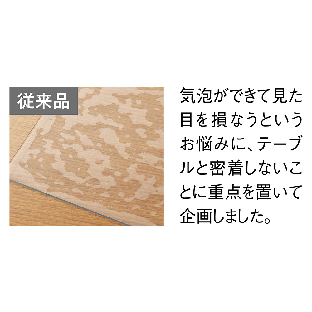 しっかりとした厚みで上質感があり、クリアな透明感。表面はサラサラと気持ちの良い感触で、直接手が触れる食卓にもピッタリです。