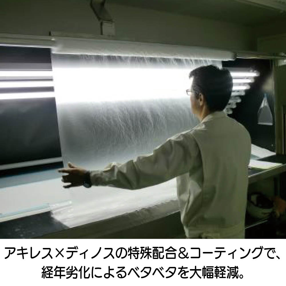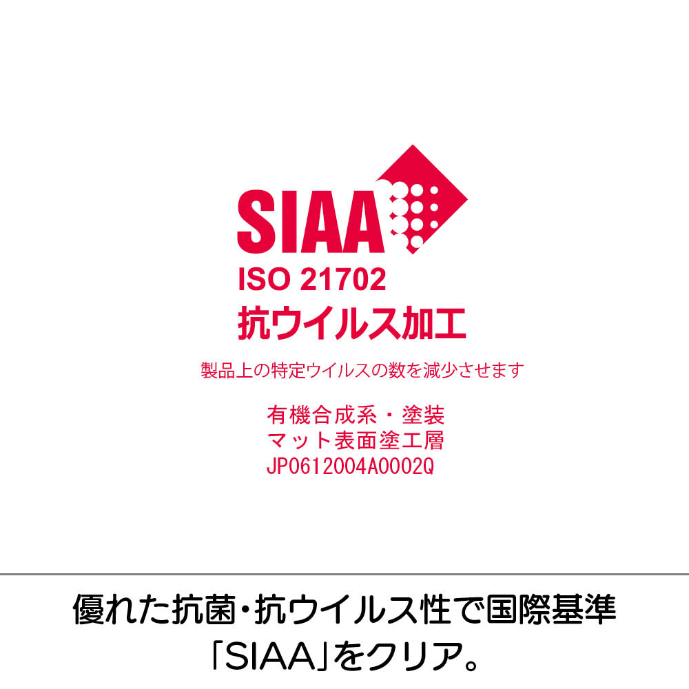 今こそおうちの卓上全部に引きたい!抗ウイルス・抗菌マット。ご好評頂いていたディノスとアキレスの共同企画商品 透明テーブルマット。SIAAマークがついて更にグレードアップしました!国際基準に準じた「抗ウイルス SIAAマーク」で更にグレードアップ!食事や家族の団らんの場であるテーブルだけは衛生に気を付けたい!そんな思いを大好評の「アキレス 透明テーブルマット」が叶えます。24時間で99.9%の細菌・ウイルスを低減。家中の卓上に欲しい商品です!(※1)■オススメポイント1【高い抗菌・抗ウイルス効果】付着したウイルス・菌を24時間で99.9%以上低減することができます。食事や家族団らんの場であるダイニングテーブルには特におススメです。■オススメポイント2【テーブルマットとしての高いクオリティ】・テーブルを傷めにくい、研究を重ねた素材を使用・特殊加工で気泡ができにくく、テーブルの見た目を損ねません。・特殊両面コーティング塩化ビニールを使用しているので、写真をはさんでも転写の心配はありません。・厚さはこだわりの1.5mm。クッション性は食器の保護に、ペンの跡が残りづらいのでテレワークや学習机としても。■オススメポイント3【豊富なサイズ展開】各家庭、また、おうちのなかのテーブルによって、サイズは様々。ぴったりのサイズを選んでいただくために、たくさんのサイズをご用意致しました。市販のカッターでカンタンにカットできるので、特殊な形状のテーブルにも対応できます。■オススメポイント4【オーダーカットもご用意しています】よりピッタリのサイズをご要望のお客様には別の品番でオーダーカットもご用意しております。オシャレな形のテーブルや、カウンターキッチンなどにおススメです。(※1)本商品は病気の治療や予防を目的とするものでは御座いません。また、抗菌・抗ウイルス性能は全ての菌・ウイルスに対して効果があるものではありません。抗菌・抗ウイルス性能は試験機関における結果であり、実際の使用状況により異なる場合が御座います。本製品は商品表面に付着したウイルスに対して発現するものであり、感染予防を保証するものではありません。
