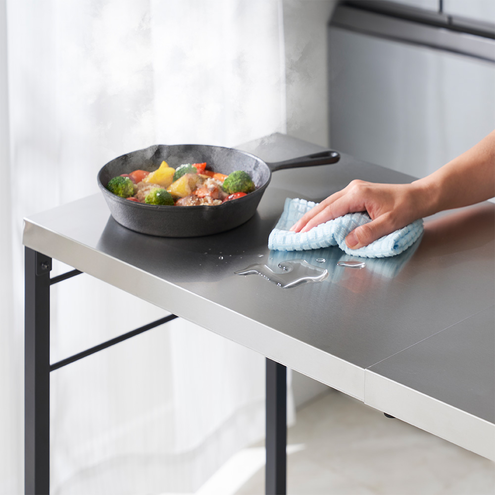 天板は熱や水、汚れに強く、お手入れも簡単なステンレス製。本格的な調理もできます。