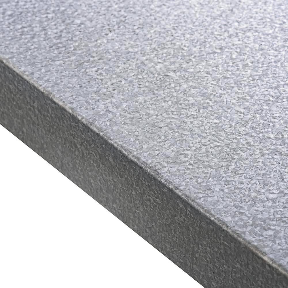 ガルバリウム鋼板は結晶模様の美しい表面をもち、住宅建材にも使われる頑丈な素材です。水や油に強く、さびにくいのが特徴です。乾燥機を置かない場合も、部分洗いや洗剤収納に重宝します。