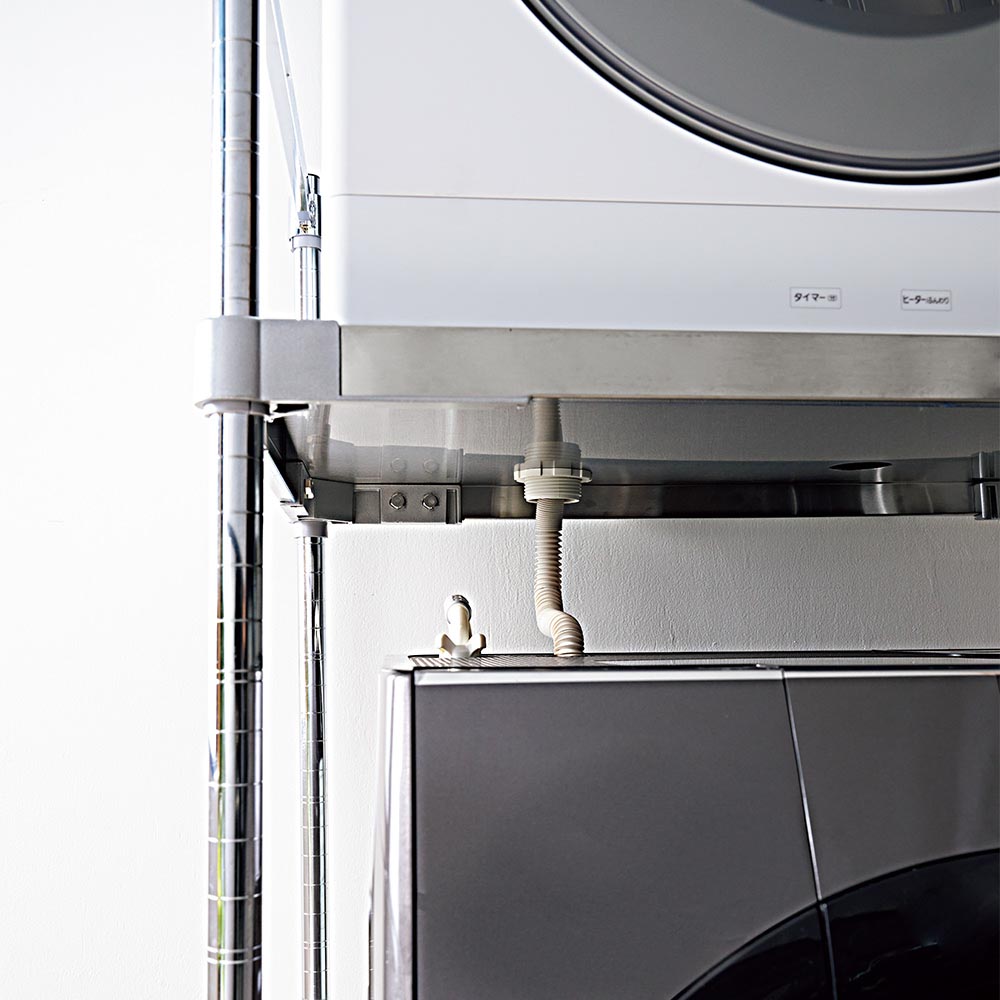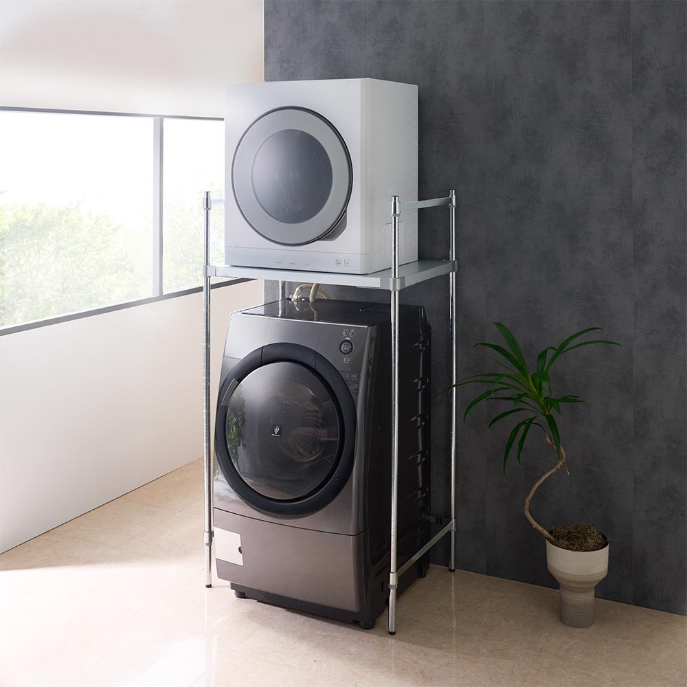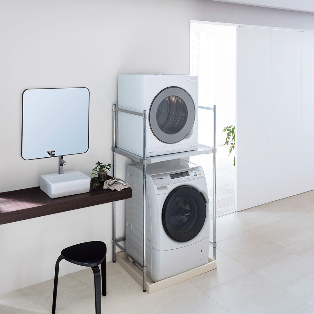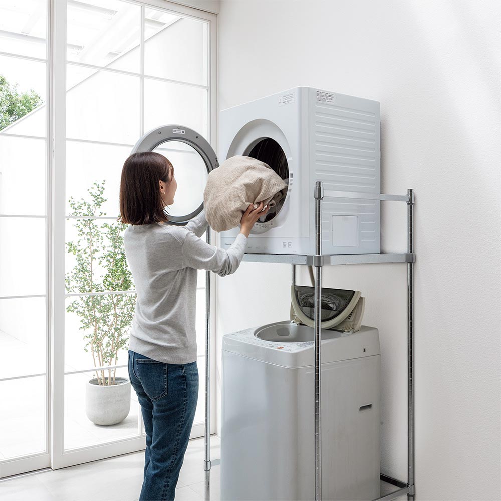 洗濯機上を活用!置き場に困る乾燥機はコレで解決。業務用レベルの頑丈さを誇る国産ラック。
