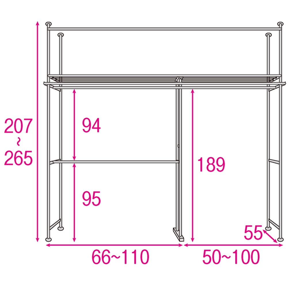 幅伸縮タイプ。柱やドアを避けて置きたい場所にぴったり設置できます。