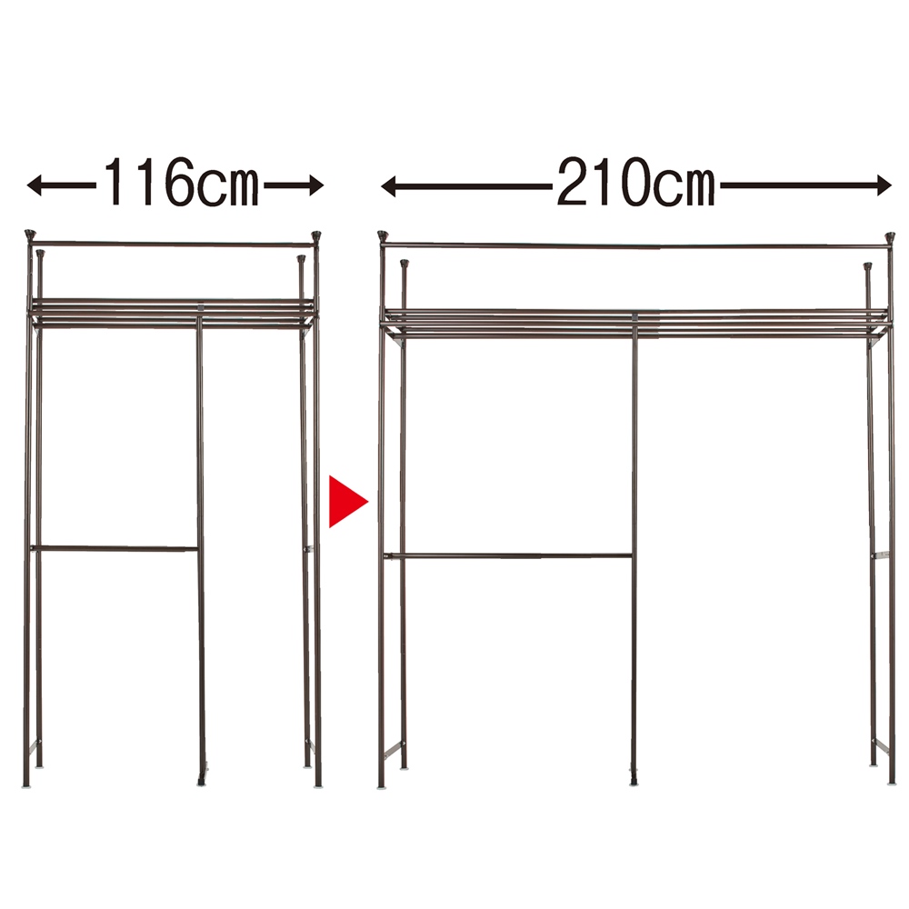 幅伸縮タイプ。柱やドアを避けて置きたい場所にぴったり設置できます。