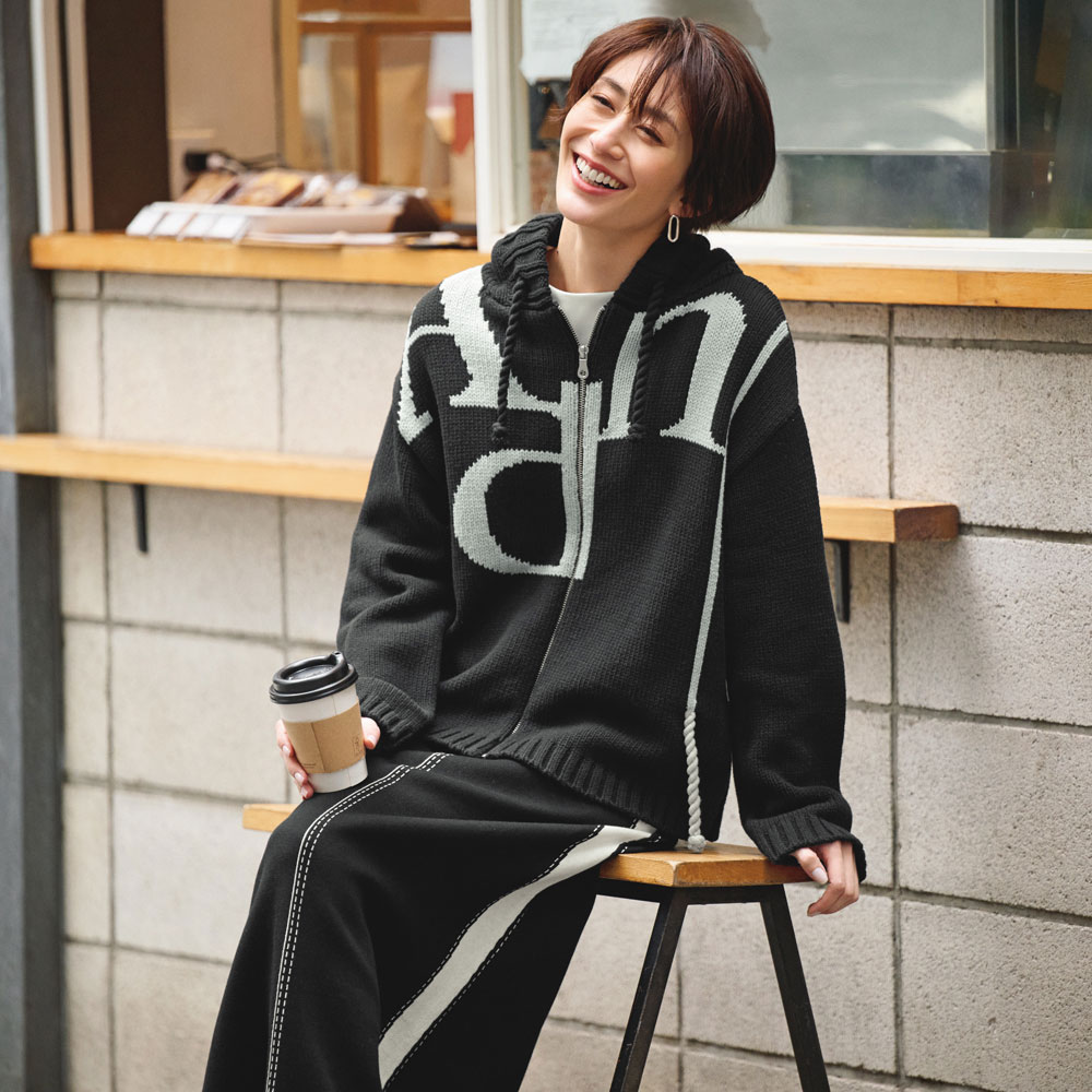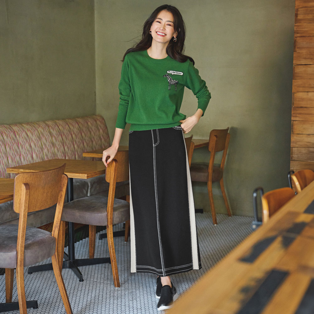 返品送料無料キャンペーン実施中!3/31(火)まで 対象商品Autumn RELAX STYLEモードニュアンスの今秋スタイル日射しはまだ強いけれど、吹き抜ける風が新しい秋を告げて――。お洒落が楽しくなる時期に向けて、モード力高めのデイリースタイルを揃えました。友達と会う日は、チャーミング指数を上げてぱっと見デニムスカートのようで、実はオールニット。デニムパーツをかたどったトロンプルイユ(だまし絵)デザインは、裏返すと白黒が反転する技ありのリバーシブルです。形はすっきりと女性らしいナローAライン。広めのサイドラインがスラリとした着姿を生み、はつらつとしたムードを醸し出します。