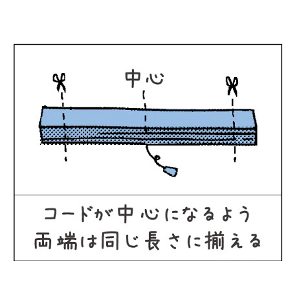 取り付け場所の幅に合わせて、少し大きめのカッターで簡単にカットできます。 ※コードが中央にくるように両側を均等にカットしてください。