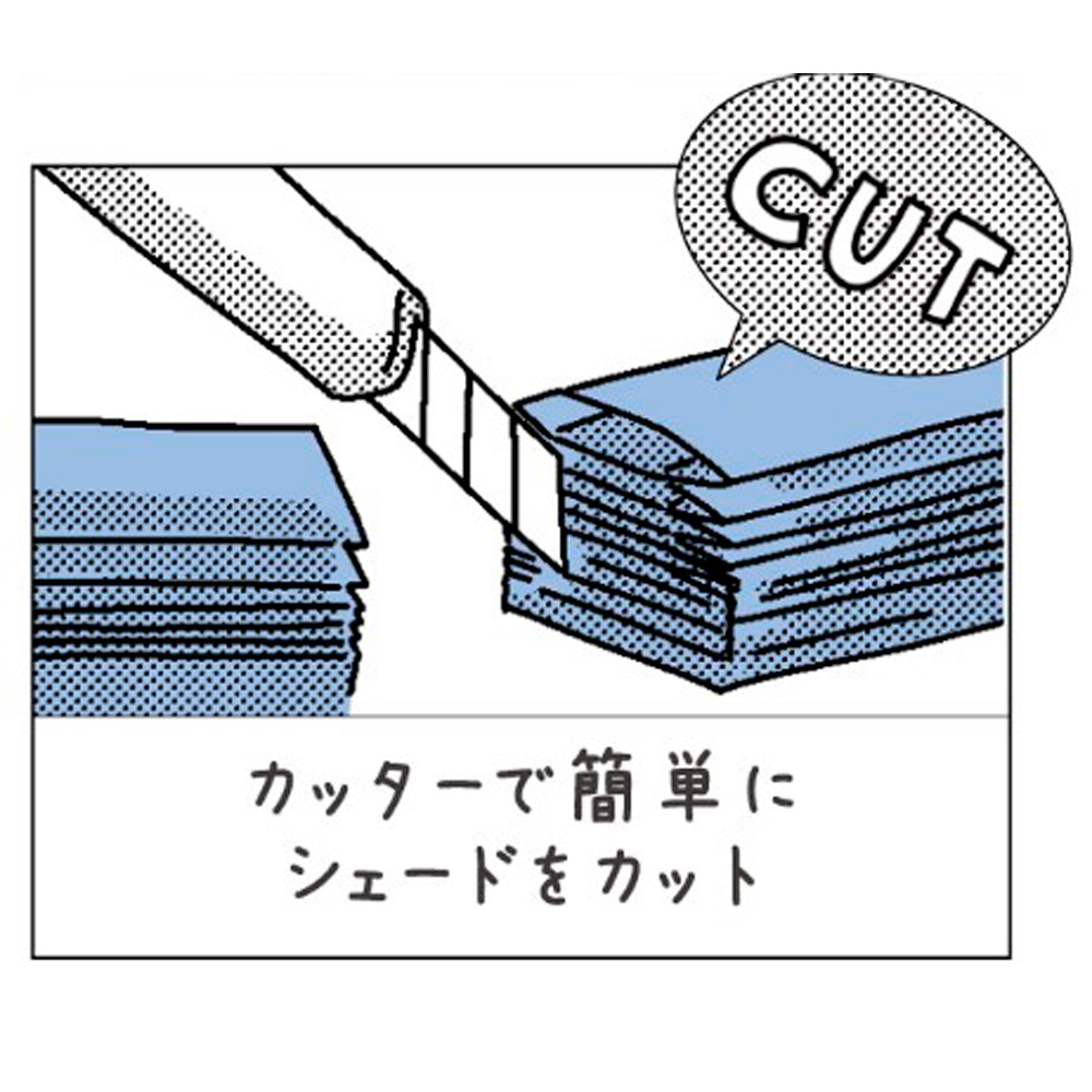 おうちで幅を簡単カット! 暑さをやわらげるハニカム構造シェード。小窓や採光窓にピッタリはまるハニカム構造シェード。カッターでカットでき、軽いので突っ張りポールで簡単に設置できます。自然の光をほどよく取り込みながら、ハニカム構造(蜂の巣構造)で夏は断熱、冬は保温効果を発揮。冷暖房効率を高めて、省エネに貢献します。生地の外側半分は採光性を高めるホワイト色です。【ポイント1】夏涼しく冬暖かく一年中快適六角形の空洞に空気をため込むハニカム(蜂の巣)構造が、窓とお部屋の間に断熱層をつくり、夏は遮熱で温度上昇をセーブ、冬は保温で暖房効率をアップ。一年中心地よく暮らせます。【ポイント2】窓に合わせて幅を調節取り付け場所の幅に合わせて、カッターで簡単にカットできます。※コードが中央にくるように両側を均等にカットしてください。【ポイント3】ラクラク設置お手持ちのつっぱりポールを通すだけ。クギやネジを使わないので窓枠を傷めません。