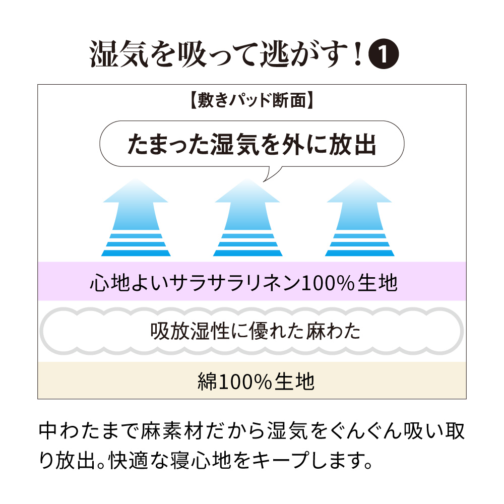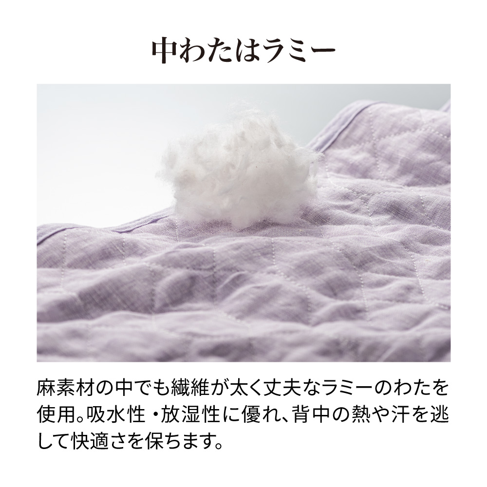 天然素材のひんやり感にうっとり。老舗メーカー・ロマンス小杉製で、中わたまで麻なのにコスパ◎の敷きパッドです。フレンチリネンの側生地×麻100%の中わた。(ア)ラベンダー 天然素材のひんやり感にうっとり。老舗メーカー・ロマンス小杉製で、中わたまで麻なのにコスパ◎の敷きパッドです。(イ)グレージュ