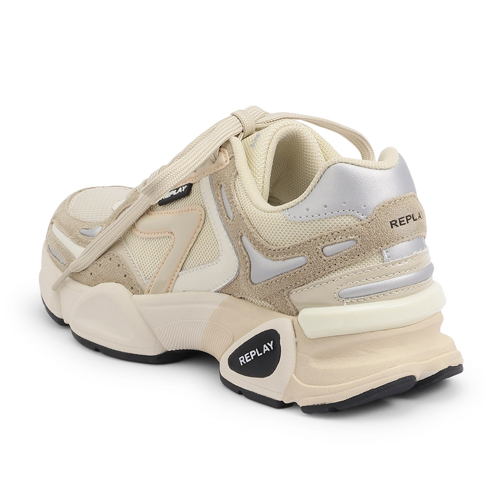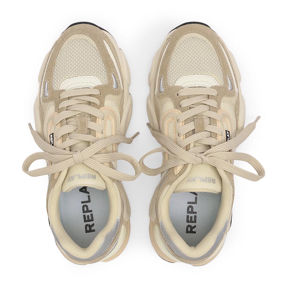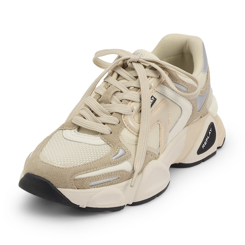 お出かけが楽しくなる SHOESアッパーはメッシュ、エナメル、牛革の異素材ミックスで印象的に。ソールは凹凸感のあるトレンドのボリュームタイプ。カジュアルさの中にもレトロ感が漂い、コーディネートになじみやすい厚底スニーカーです。ダークグリーンベースにはピンクベージュ、ベージュベースにはピンクの差し色が効いています。