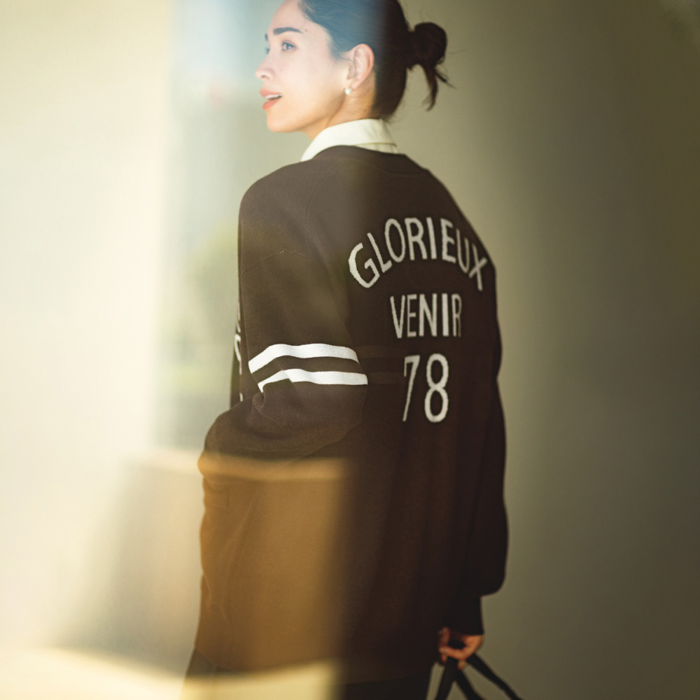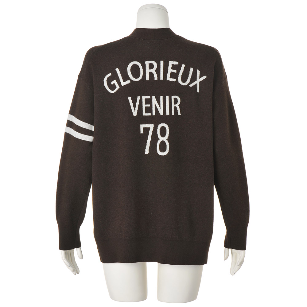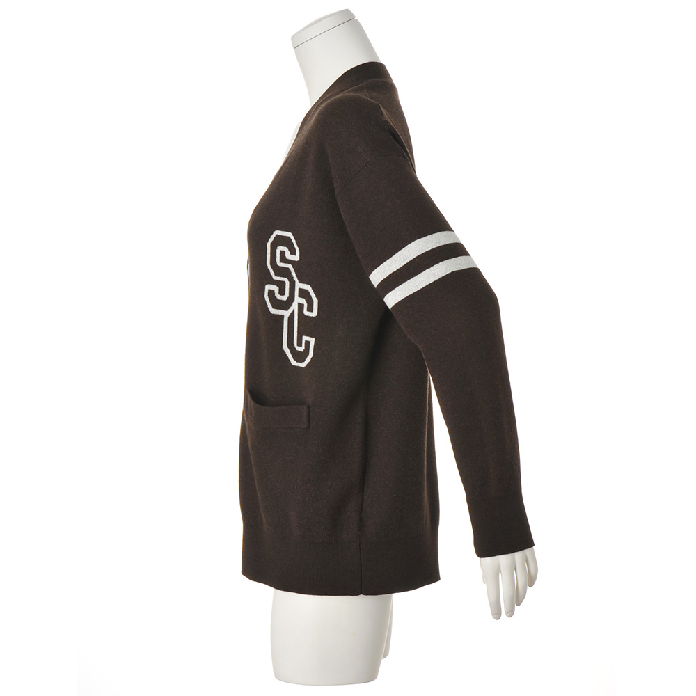 DAILY WARDROBE暮らしに寄り添うデイリークロースをご提案。カジュアルすぎない上品さで、オンオフ着回せるワードローブに。程よいきちんと感で、デイリーコーデを格上げします。おしゃれに差がつくカレッジ風。こだわりの大人カジュアルが完成胸元にはロゴ、後ろにはメッセージが入ったカレッジニットカーディガン。ダブルジャカード編みで型崩れしにくく、適度な厚みがあるため羽織りものとして活躍。アクセントの袖ラインは片側のみにデザインし、ヴィンテージライクで大人な雰囲気に。トレンドのブラウン色で大きな黒貝ボタンもクラス感たっぷり。