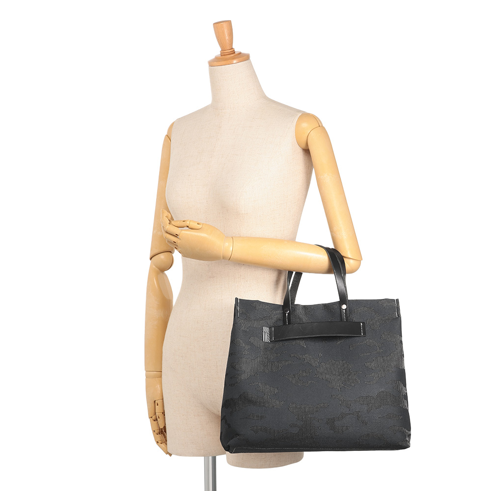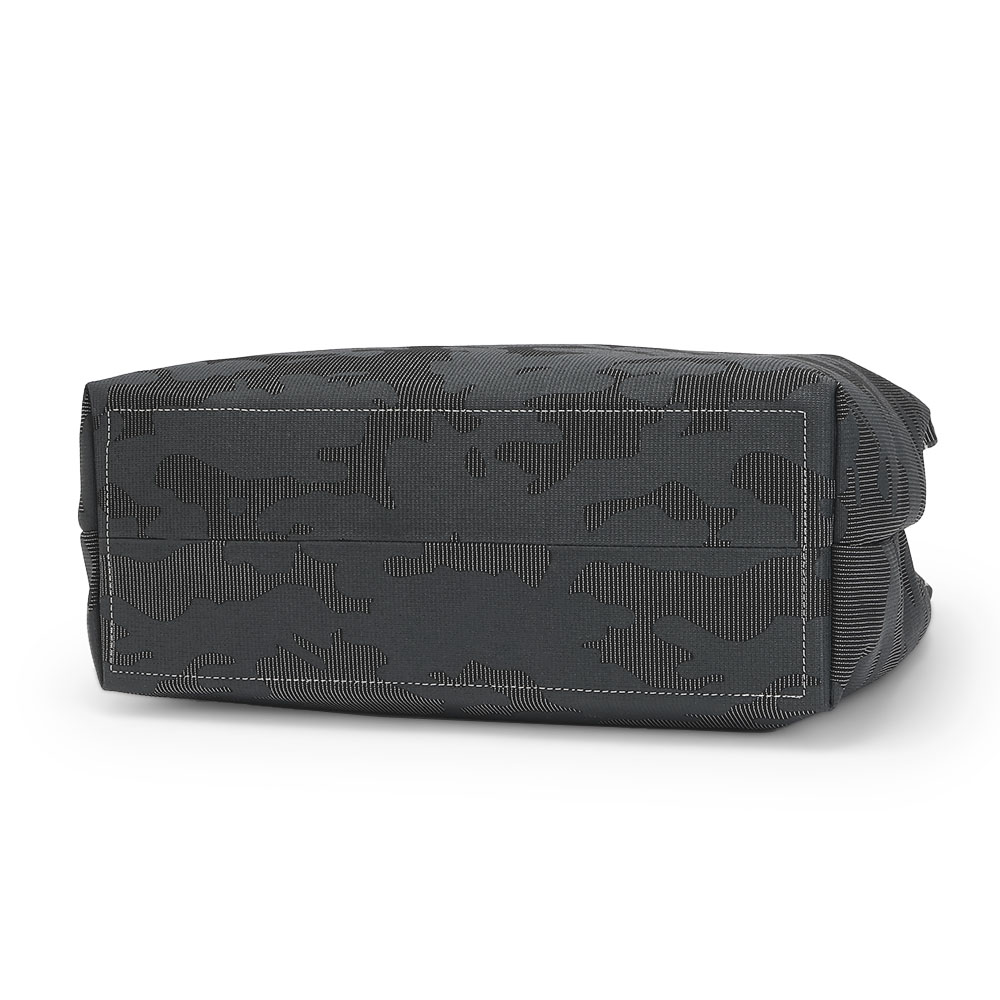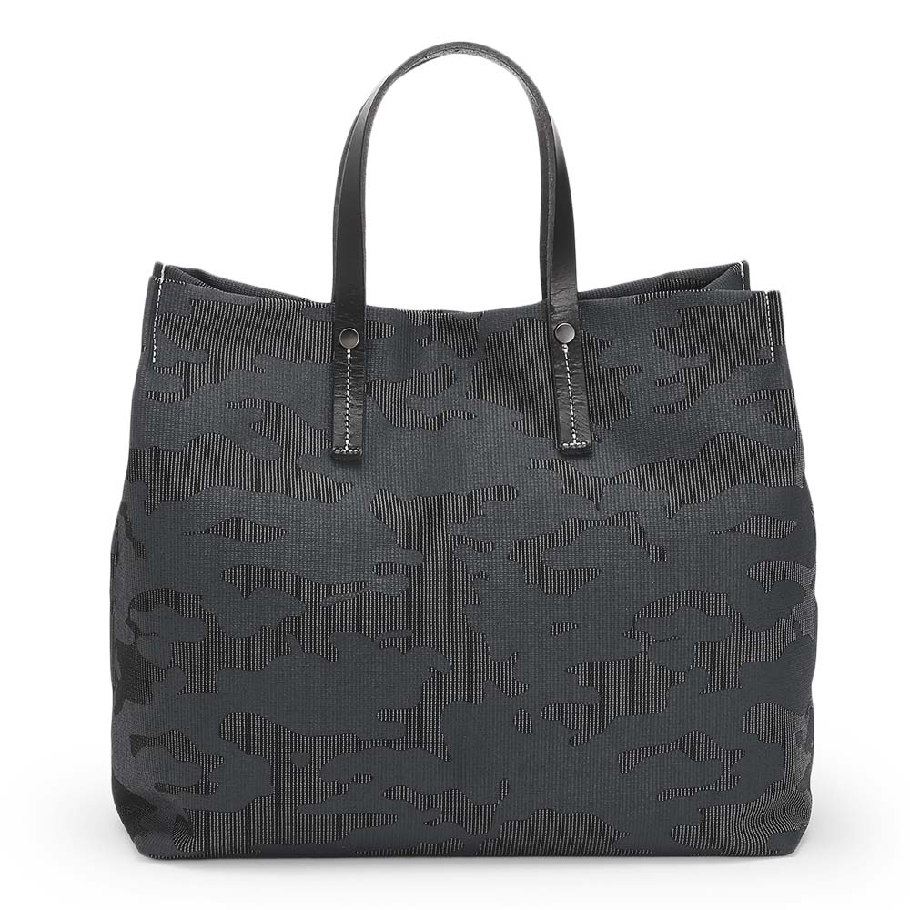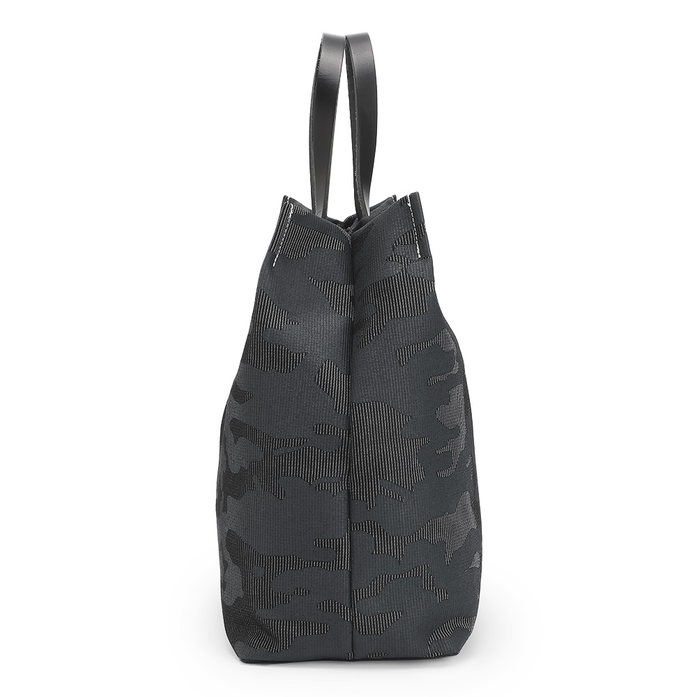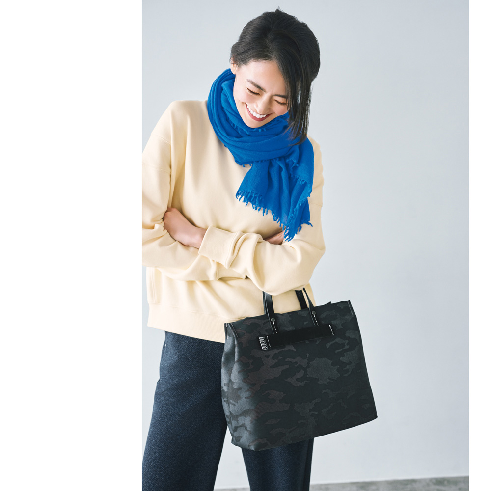 FASHION GOODS“旬”を盛り込んだ冬の小物リスト今っぽさを手軽に楽しめるのはもちろん、使いやすさにも拘り抜いたアイテムです。落ち着いたカモフラ柄と上品な異素材使いが決め手黒ベースの軽やかな生地に、同トーンのカモフラ柄をオン。控えめな柄行きが、装いをこなれた雰囲気に導きます。ハンドルなどに部分使いしたレザーで、リッチ感も抜かりなく。A4サイズが入るトートバッグは何かと重宝するアイテムです。