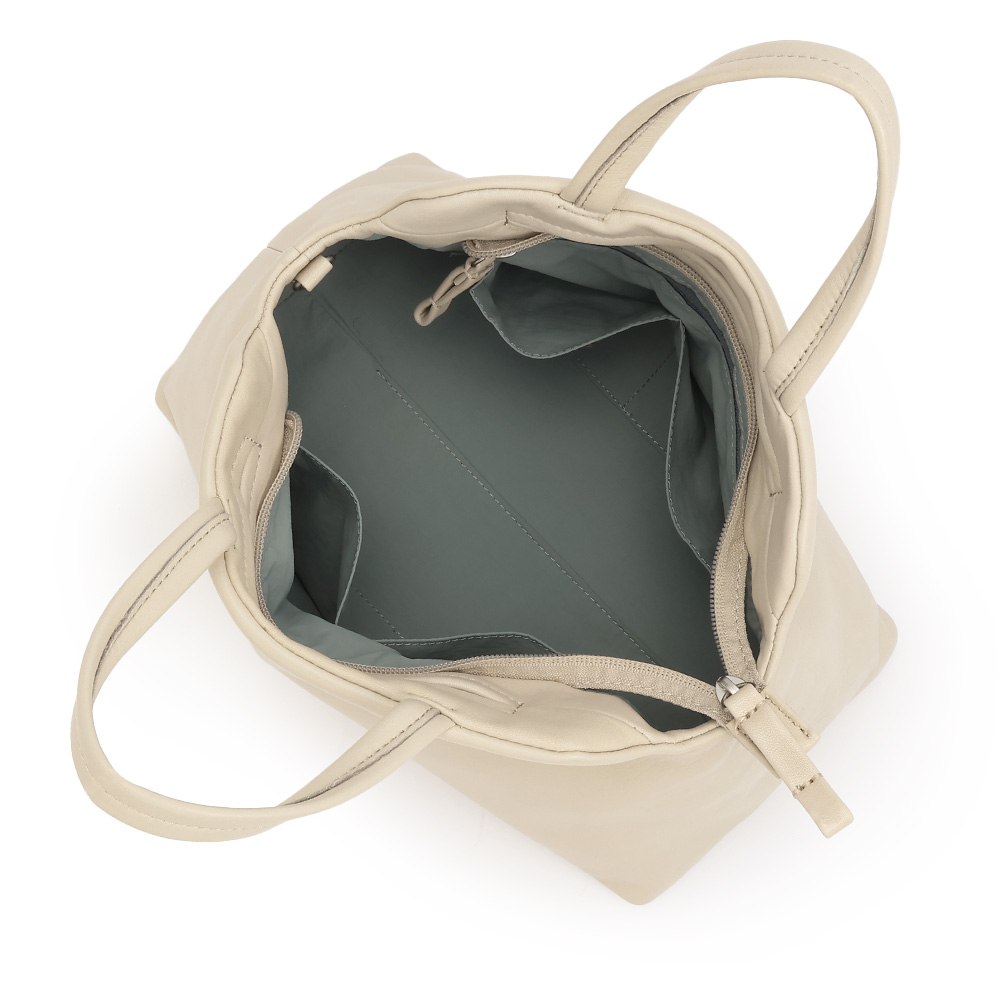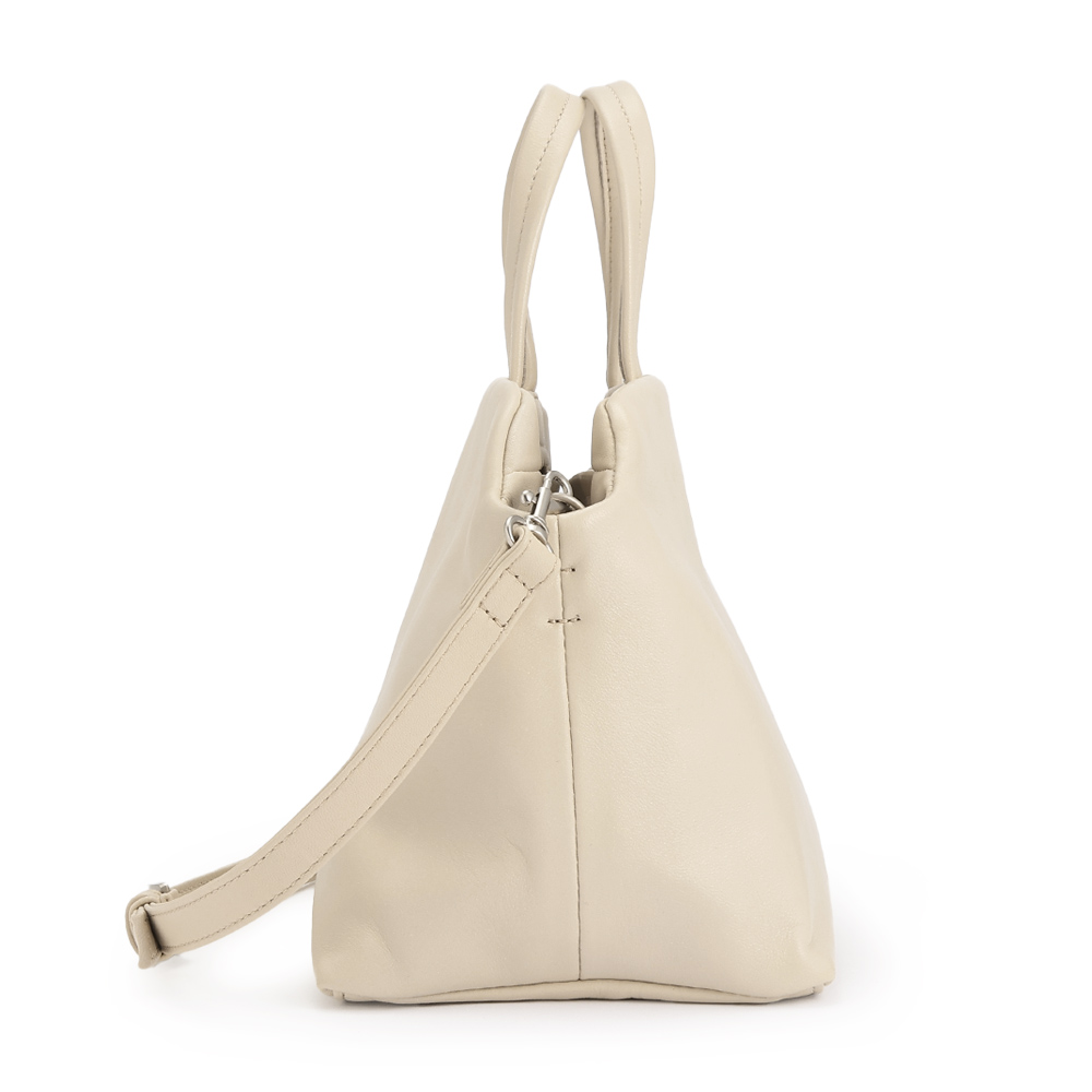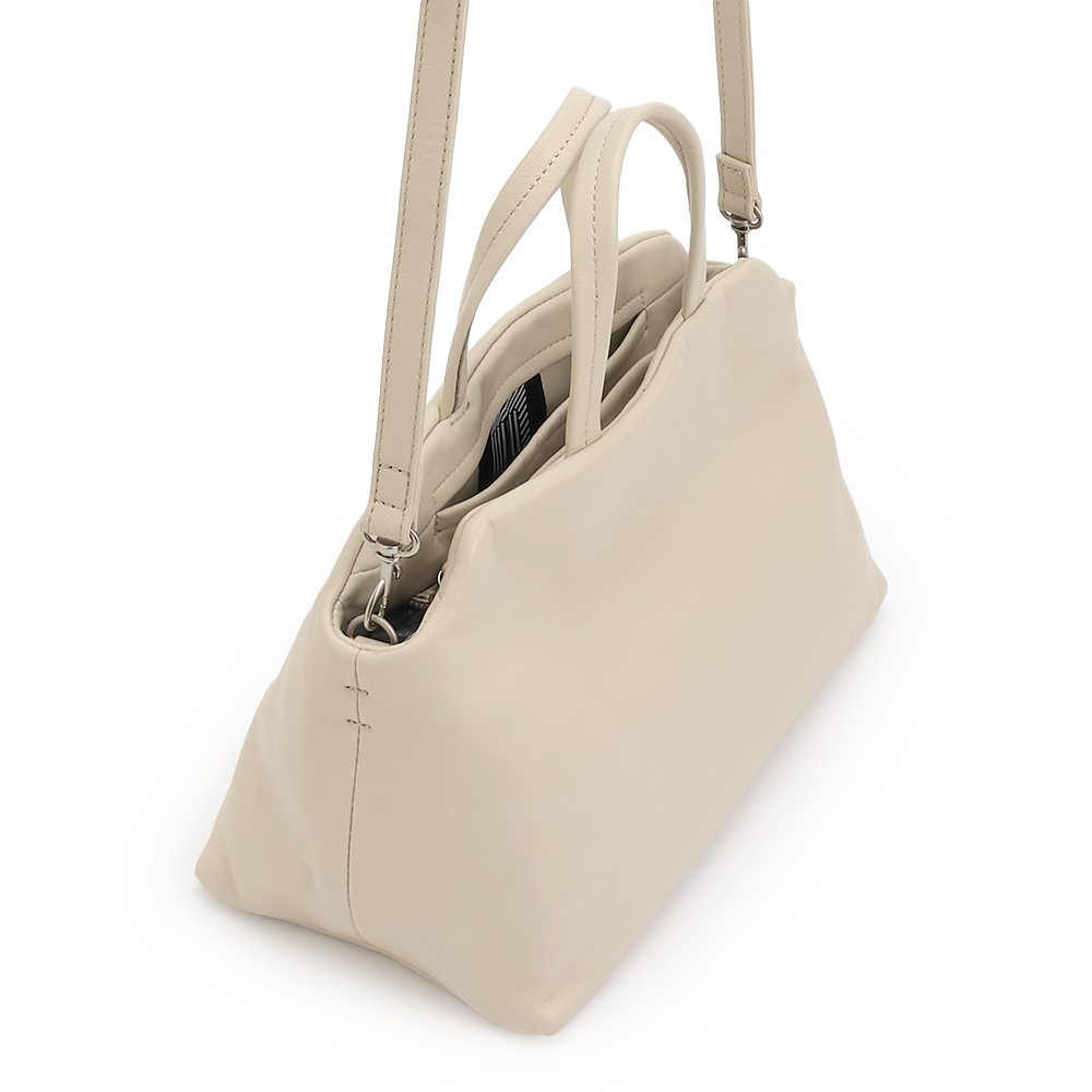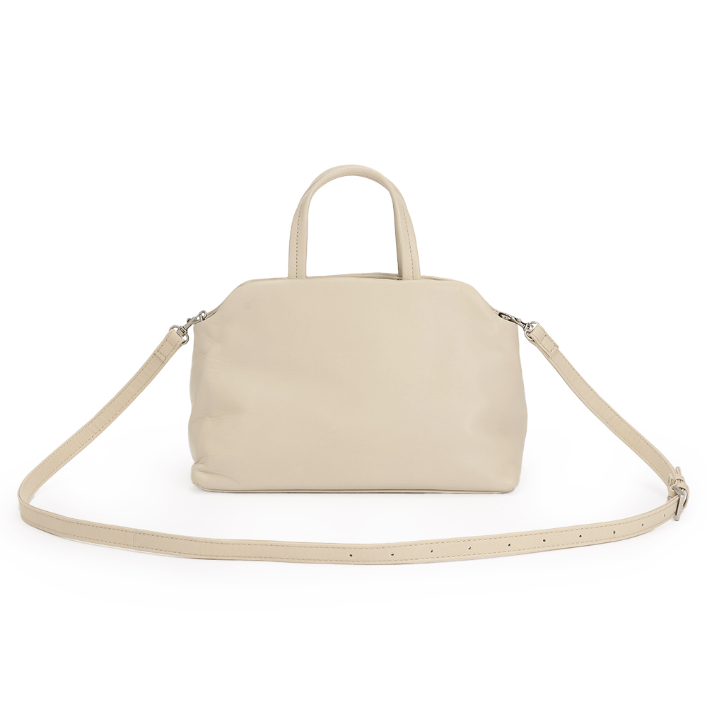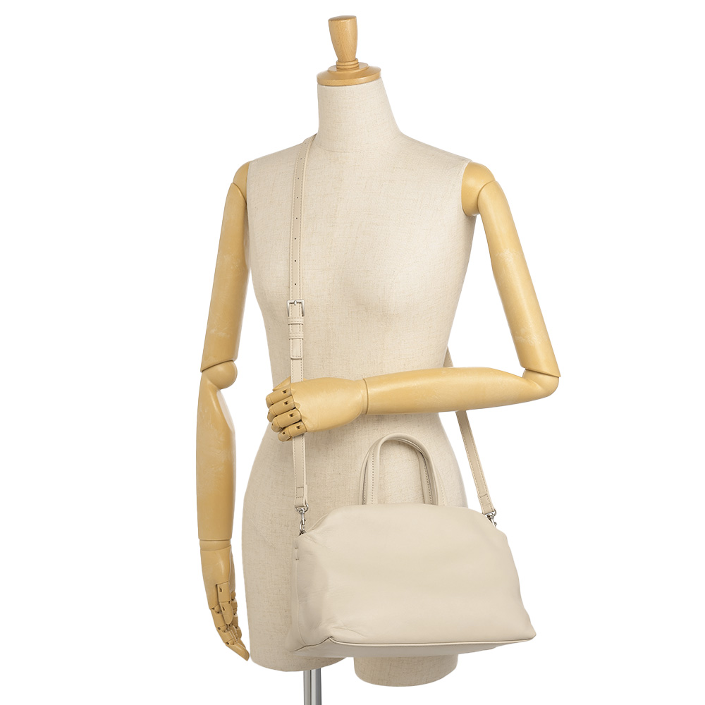 TREND ITEMシンプルなデザインでカジュアルにもエレガントにもコロンとしたフォルムで、柔らかいタッチの羊革を使用。取り外し可能ショルダーストラップつきの2WAY仕様です。リアルレザーなのに軽量で、持ち運びもストレスフリー。デイリー使いからオケージョンシーンまで幅広く対応してくれます。ポケットが多数あり、大容量です。