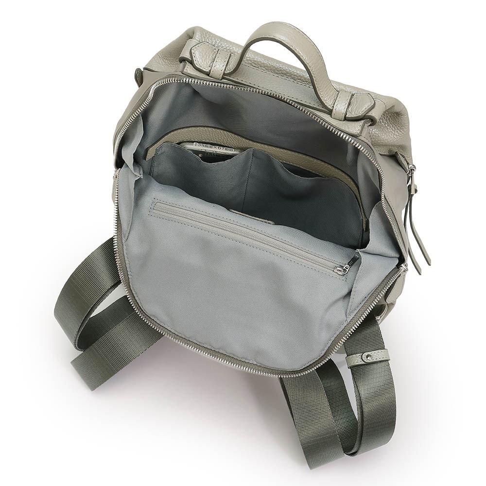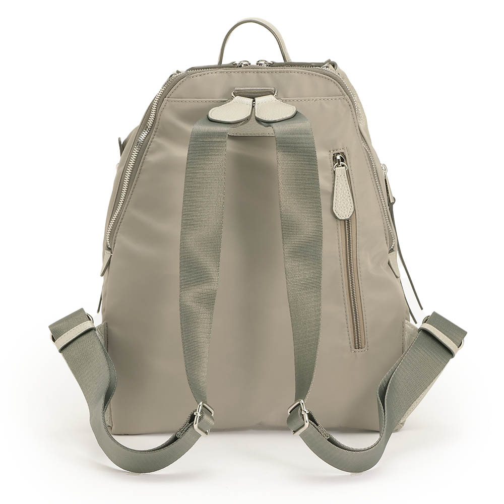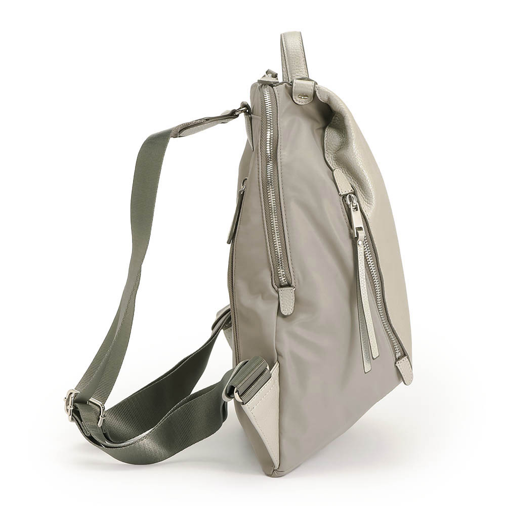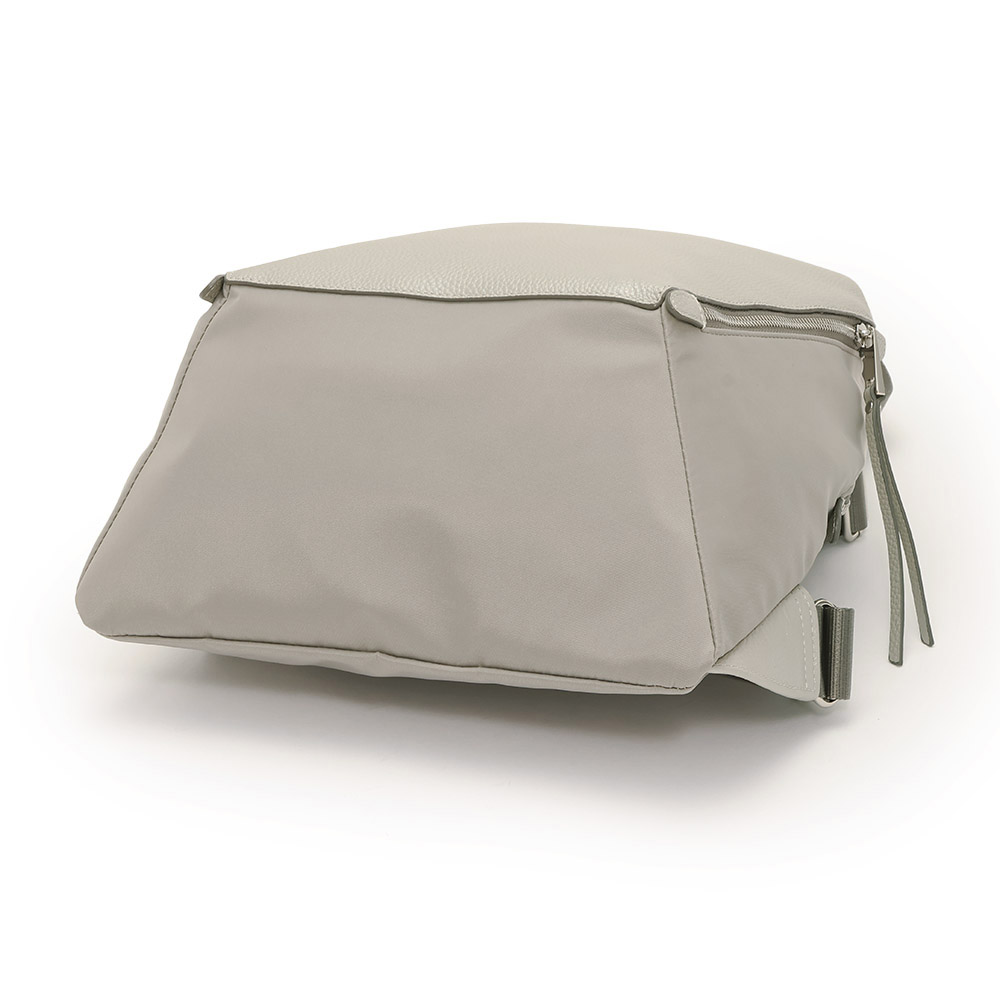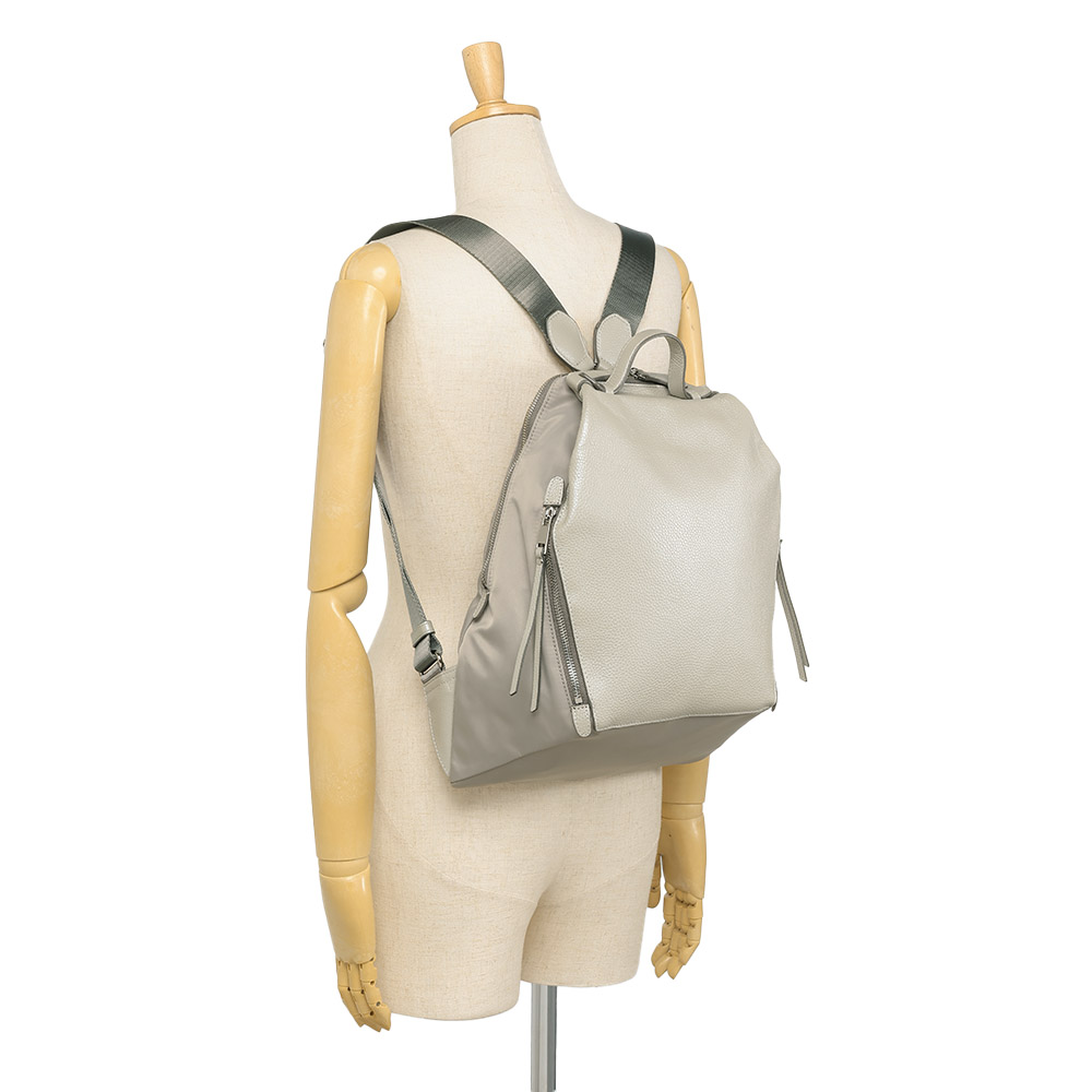 夏のコーディネートを一気にアップデートする、バッグをご紹介。取り入れるだけで季節感と鮮度が高まります。毎年人気のコンビリュックが今季はシルバーとゴールドのメタリック系で登場。牛革とナイロンの組み合わせが品よく、カジュアルすぎないところが魅力です。スマートなフォルムながらも大きく開いて収納力◎。広めのマチ、内部と外部の充実したポケットで機能的。タウン使いから旅行にもおすすめです。