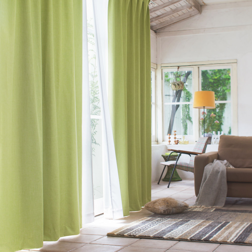 (ウ)イエローグリーン 1級遮光+4層生地で遮熱 強い西日もへっちゃら!