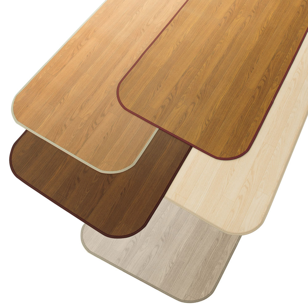 傷や汚れから床を守り、お手入れ簡単なフローリング調デスクマット。ペットや生活の気になるニオイを軽減する消臭加工付き。塩化ビニル素材で水にも強く、食べこぼしなどの汚れがサッと拭きとれます。消臭加工が施されているため、ペットの臭いや生活臭も軽減します。木目調の柄なので、フローリングの上でも違和感なく敷け、傷やへこみに強いので、床を傷から守ります。四辺テープ加工で、コーナーはつまずきにくいラウンドカット。摩擦に強いので、キャスター付きのイスにもおすすめ。