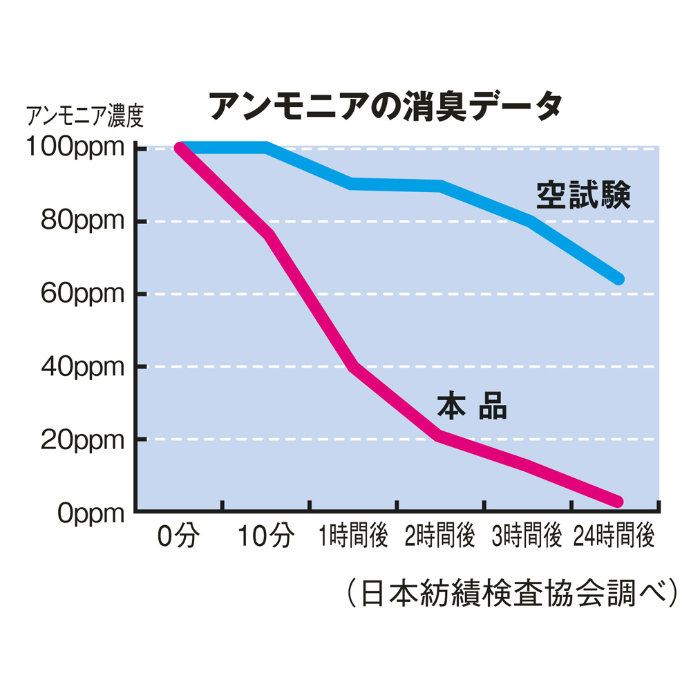 アンモニア消臭データ・・・消臭加工が、気になる臭いを軽減します。