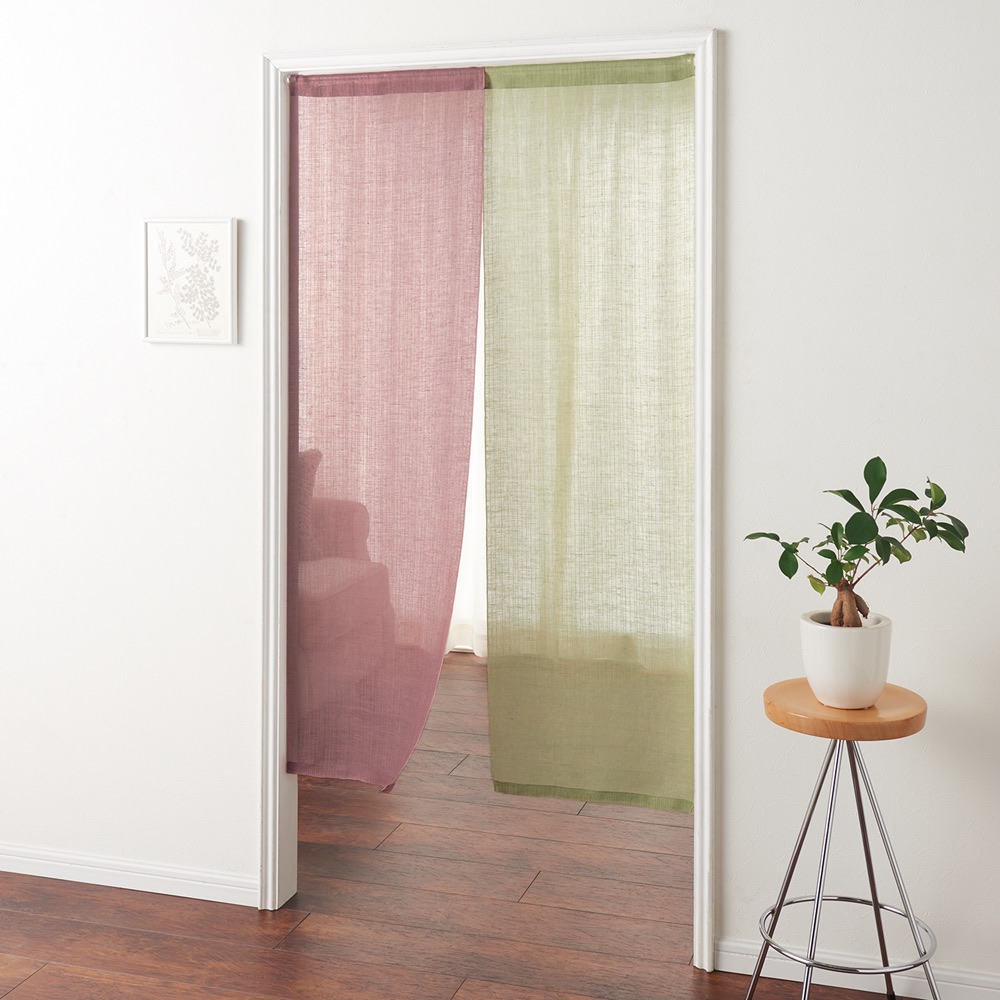 温故知新の涼・のれん好きなカラーの組み合わせでモダンなのれん使いを。さらりとした肌触りの麻素材のれん。視線を遮りたい場所やお部屋の間仕切りに。ひだのないタイプで風に美しく舞い、そこにあるだけで涼感が生まれます。今回は6色ご用意。組み合わせは自由自在。好きなカラーを組み合わせて自分らしい空間作りを。