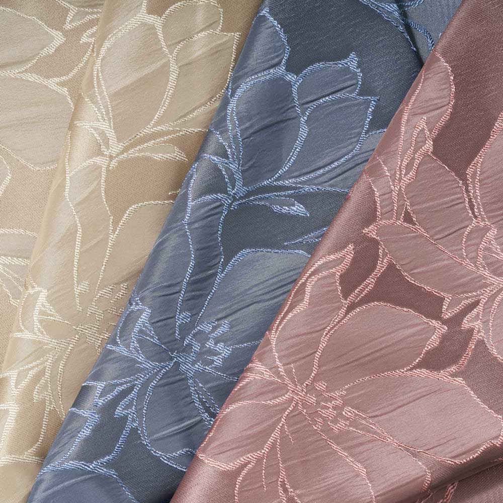 マグノリアの花柄を立体的な陰影で表現したふくれ織りジャカード。ソファやベンチ、車内のシートの衣替えに。