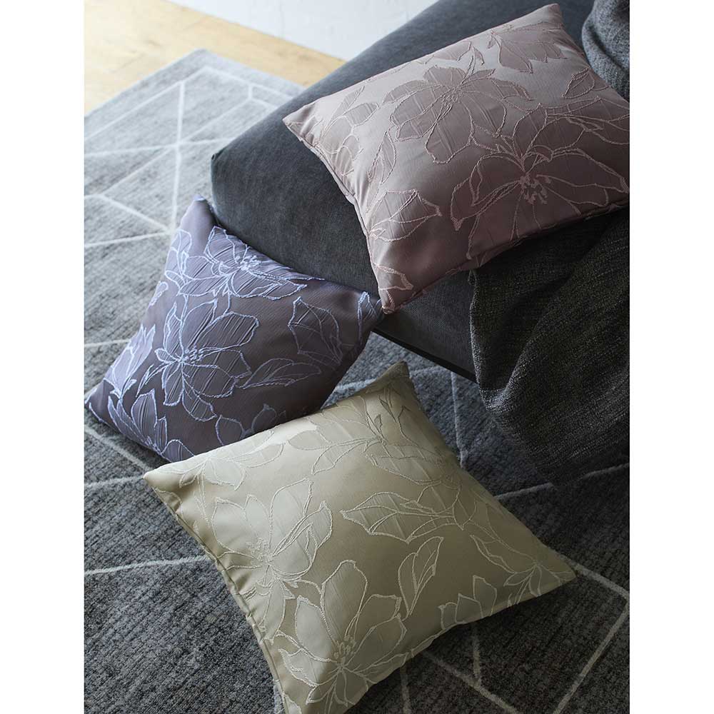 マグノリアの花柄を立体的な陰影で表現したふくれ織りジャカード。ソファやベンチ、車内のシートの衣替えに。大人の空間に似合うシックなデザイン。シルエットで表現されたデザインとシックなカラーでインテリアにも馴染みやすいデザインに仕上げました。ソファやお部屋の雰囲気をランクアップしてくれるだけでなく、毎日の暮らしをちょっと快適にしてくれるおしゃれな実用品としてもおすすめです。【ポイント1】高級感のあるジャカード織り見た目にも風合いにも高級感のある、しっかりとしたジャカード織りの生地。なめらかなフェルトタッチで、インテリアにぬくもりを添えてくれます。【ポイント2】場所に合わせて使い分け同シリーズでマット・クッションカバーもご用意、コーディネートで使えば更に上質感が。ダイニングチェアやパーソナルチェア、ロングサイズはソファやベンチや車のリアシートにも使う場所で選べます。