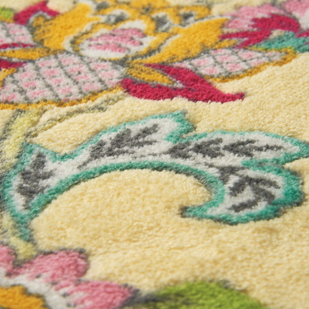 生地もプリントも国産のマット。パイルの密度が高いため、快適な踏み心地です。ハドンフラワーを大ぶりの総柄で表現した存在感のあるデザイン。エレガントなMINTONワールドにモダンな印象が加わり、今までのファンの方だけでなく、あらたなお客様に幅広くお使いいただけるテイストに仕上がりました。夏にぴったりの爽やかなグリーン系とやさしいイエロー系が、キッチンやリビング、バスルーム・玄関の足もとを彩ってくれます。