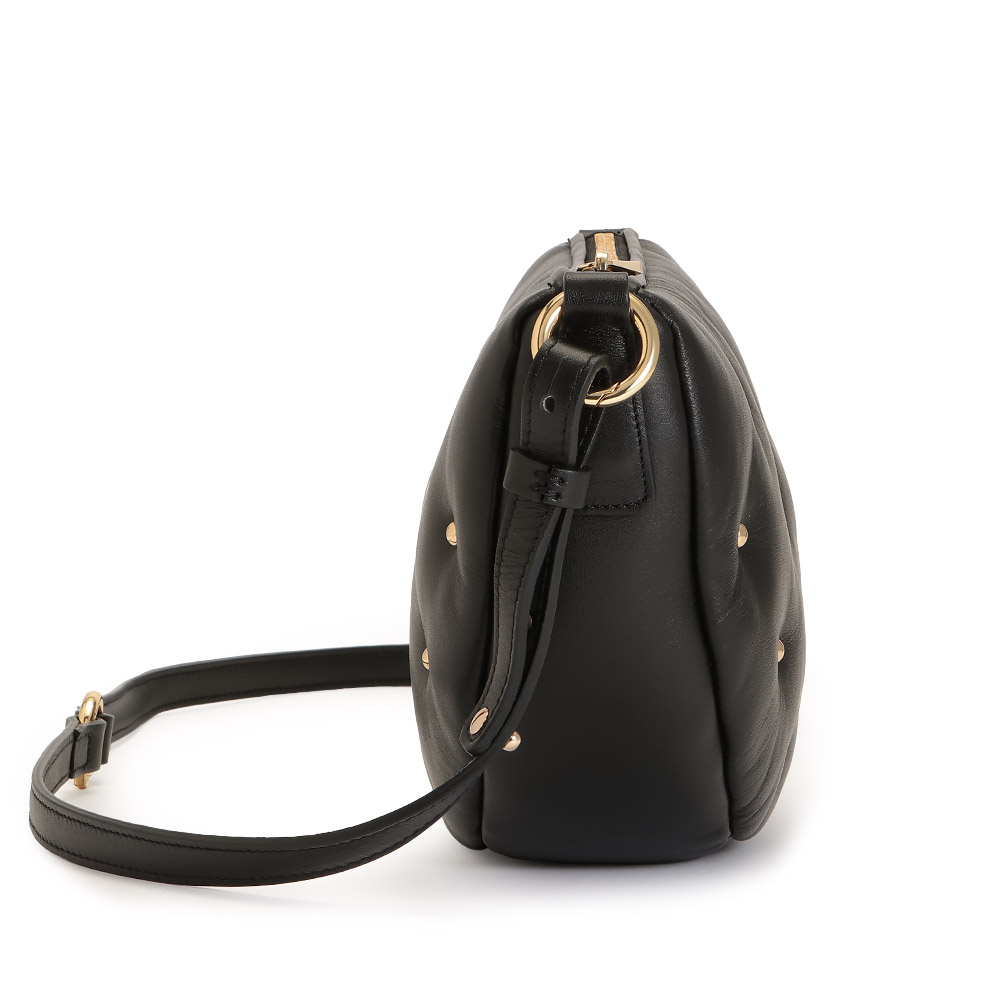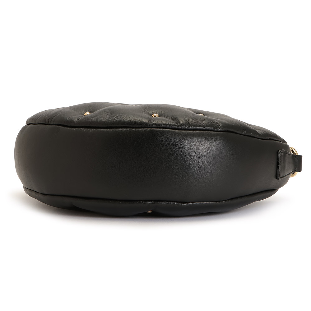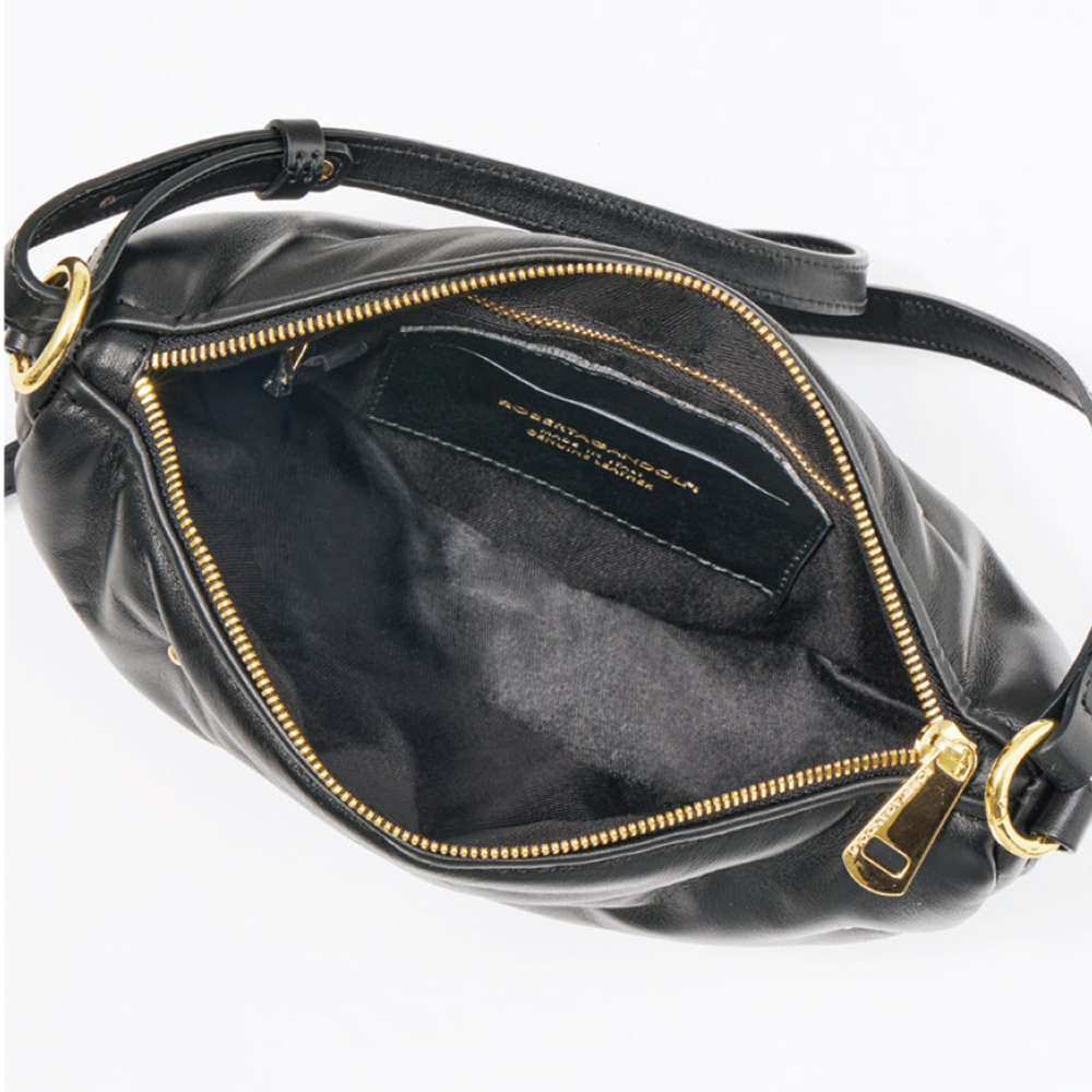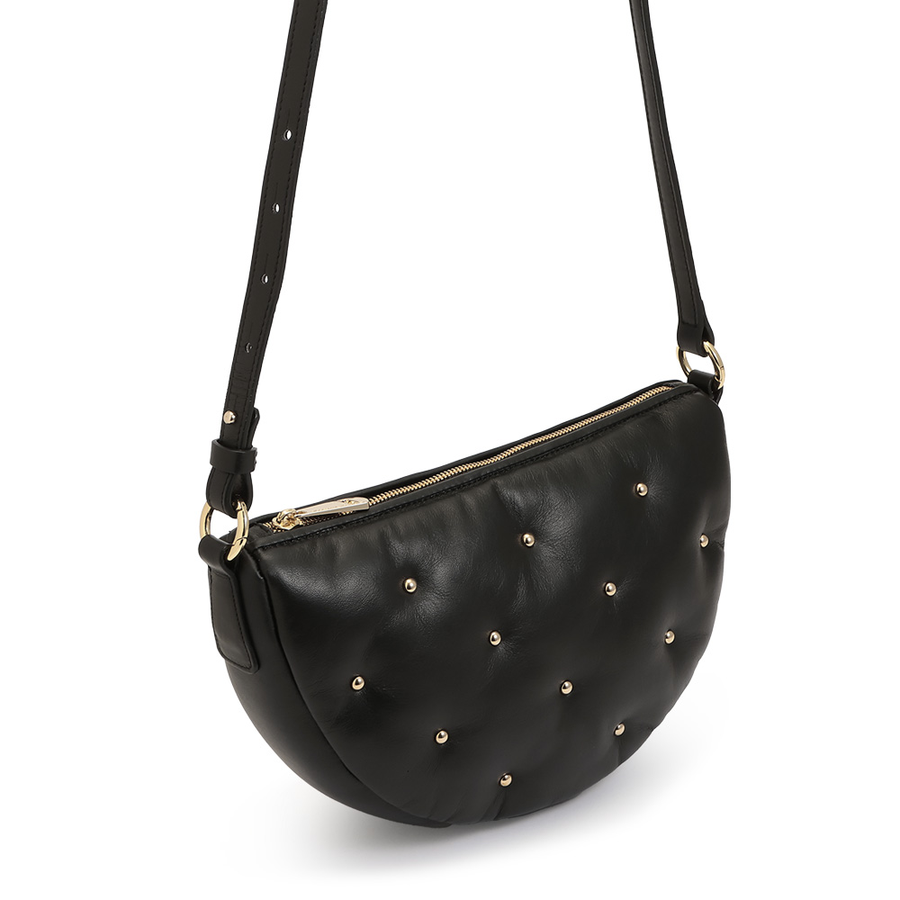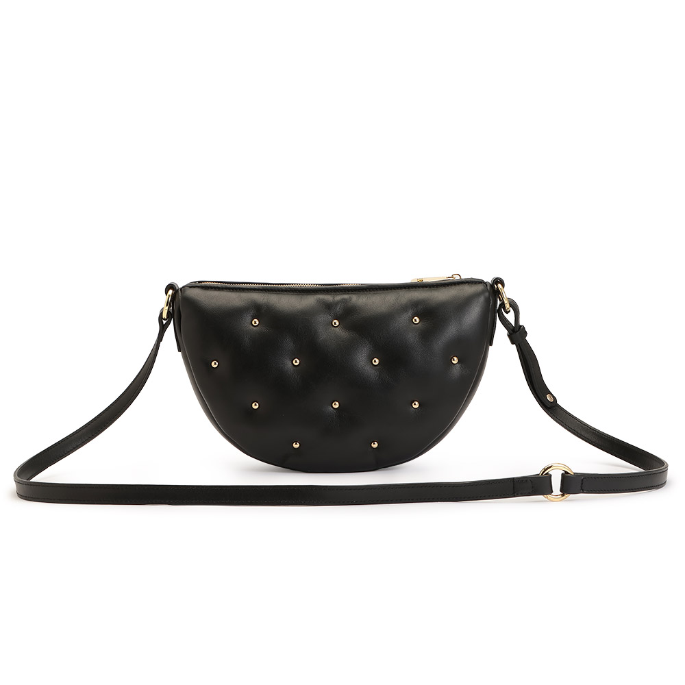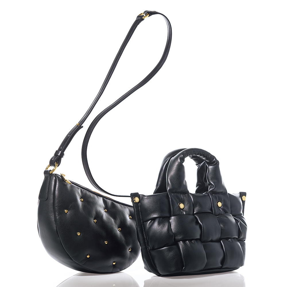 しっとりと艶めく漆黒のイタリアンレザーを自在に操ったPuffer Bag新しい美意識を映し出すアートピースがここに。イタリア・ボローニャで三代に渡り工房を営む「Roberta Gandolfi」から、中わたを仕込んだボンディングレザーのパファーバッグが新着。身体に沿う半月型ショルダーは、前後にスタッズを施して華やかに。ジョイント金具で長さが簡単にスイッチする多機能ストラップも魅力です。
