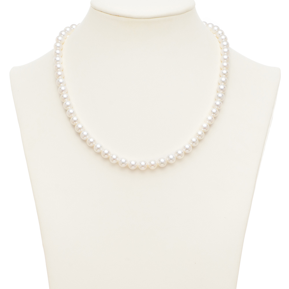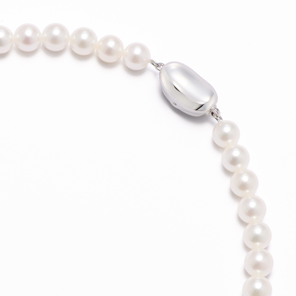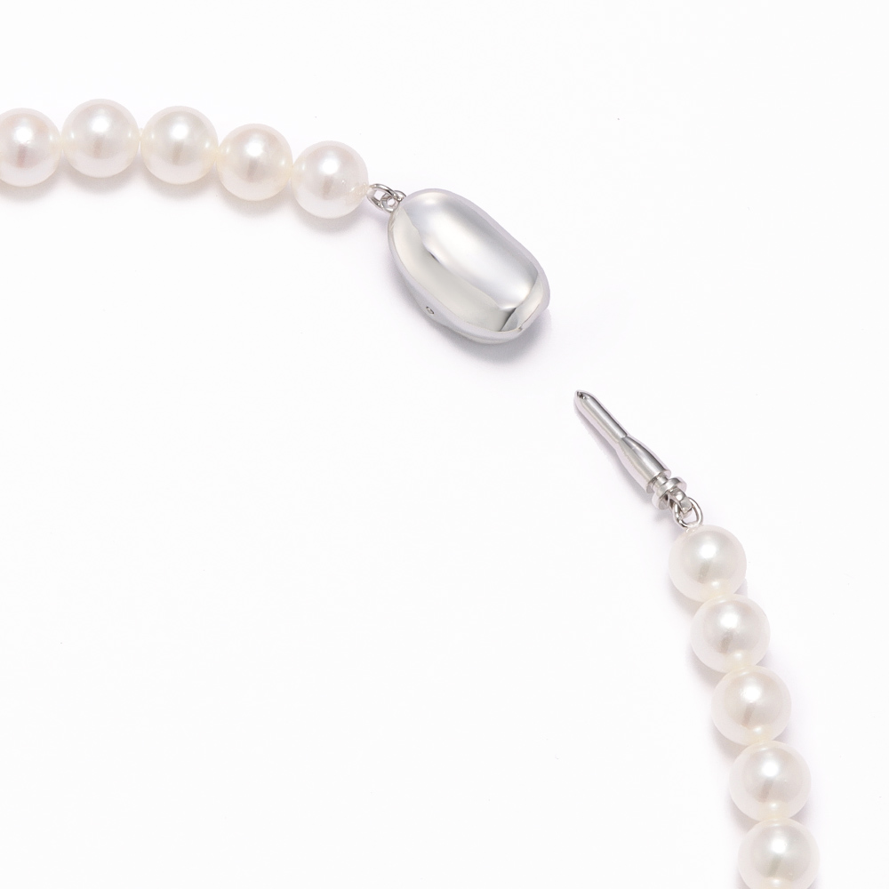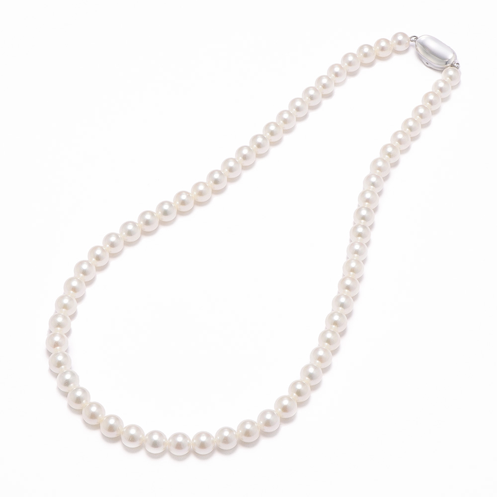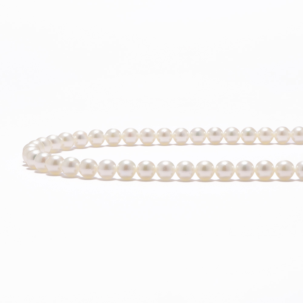 白の美しさがひときわ優美な無調色アコヤ真珠ありのままの白―内側から溢れるような輝きを放つナチュラルホワイト(無調色)のアコヤ真珠は、素肌に優しい光を添える柔らかな白が特徴。アコヤ真珠の中でも、調色加工を施していない無調色パールはほんの数%。パールが本来持っている色みと照りで勝負できる上質な珠を選りすぐりました。自然が育んだものゆえ、ひとつひとつ個性が異なり、無調色の珠のみで色、形、大きさを揃えて連にするのに、長い年月を要する貴重なコレクションです。珠のサイズを変えてレイヤードしてもお洒落。6.5mm珠のネックレス。アコヤ真珠の高騰が続く中、数量限定で確保した逸品です。