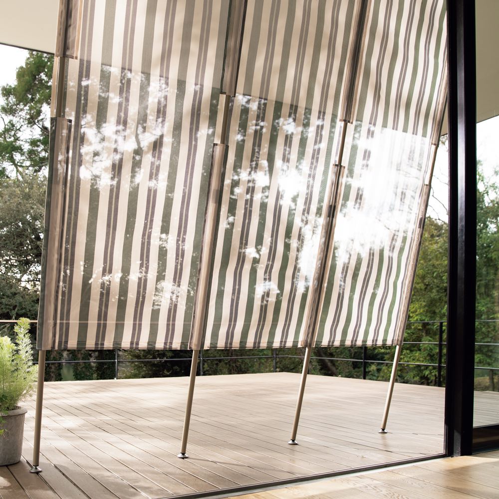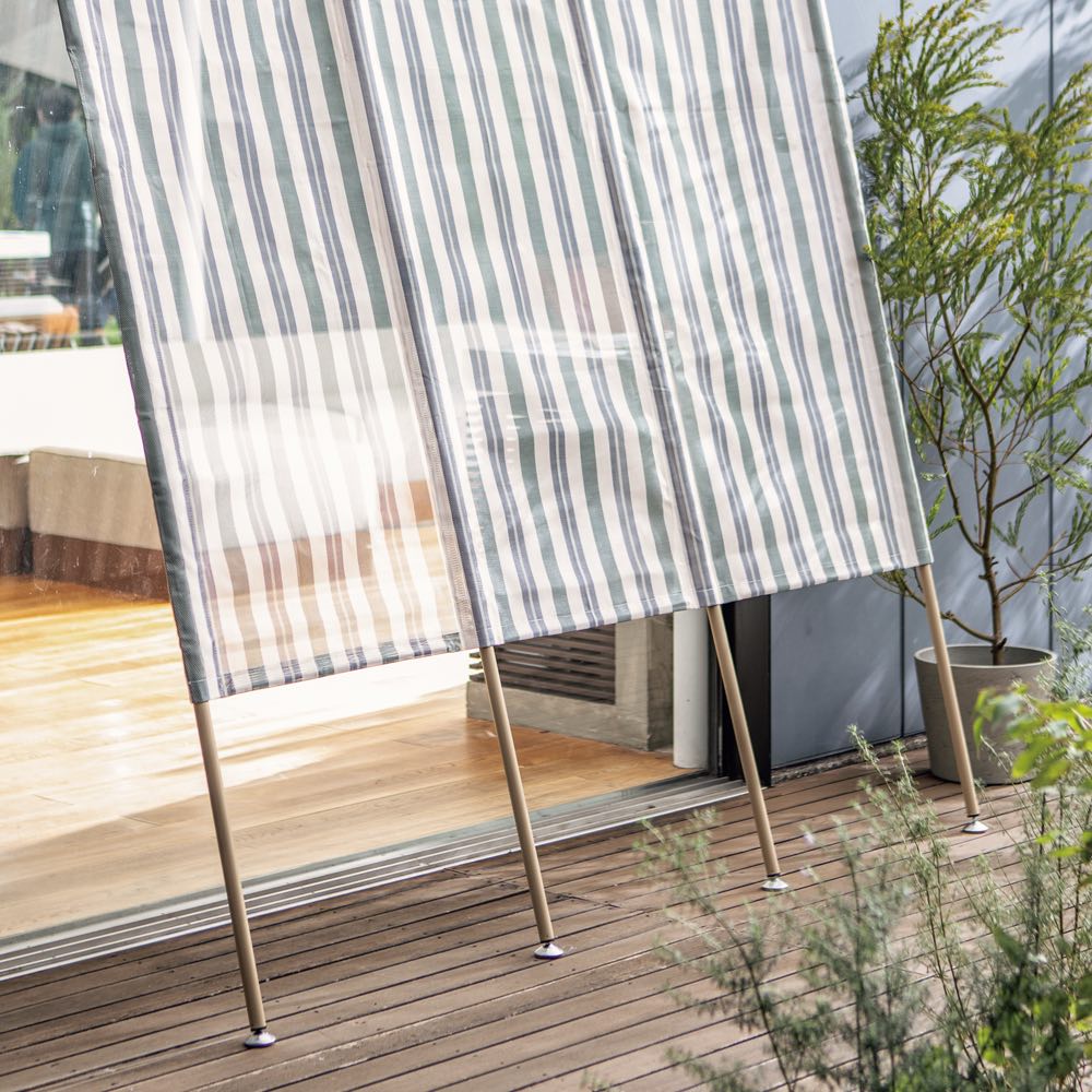 立て掛けて日除け&目隠しに。テラスなどの掃き出し口の近くに立て掛けるだけで、日射しを和らげ、外からの視線を遮ります。使いやすい色味も魅力。
