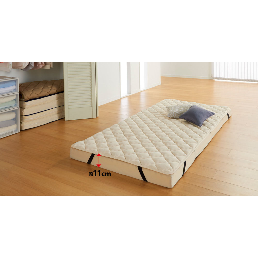 ふかふかボリュームで寝心地アップ!中わたには、防ダニ・抗菌防臭わたをたっぷり使用し、ふんわりと身体を受け止めます。ジャブジャブ洗えて清潔・安心のパッドシーツ。※システムコンパクト専用の上層パッドになりますたっぷりボリュームで寝心地UP!防ダニ・抗菌防臭わたで清潔性◎のパッドシーツ【側地・表面】水分を吸収・拡散し、吸水・速乾性を発揮する素材を使用。さらに、ニット生地で仕立てているため、肌当たりもやわらか。ふっくらボリュームの中わたと相性ぴったりです。【中わた】ボリュームたっぷり!ふかふか寝心地で快適です。中わたには、防ダニ・抗菌防臭効果のある、テイジン・マイティトップ2を使用。洗濯機で丸洗いOKなので、清潔・衛生的です。4隅ゴムで取り外しラクラク!ぜひ、「下層マットレス」とご一緒にお使いください!