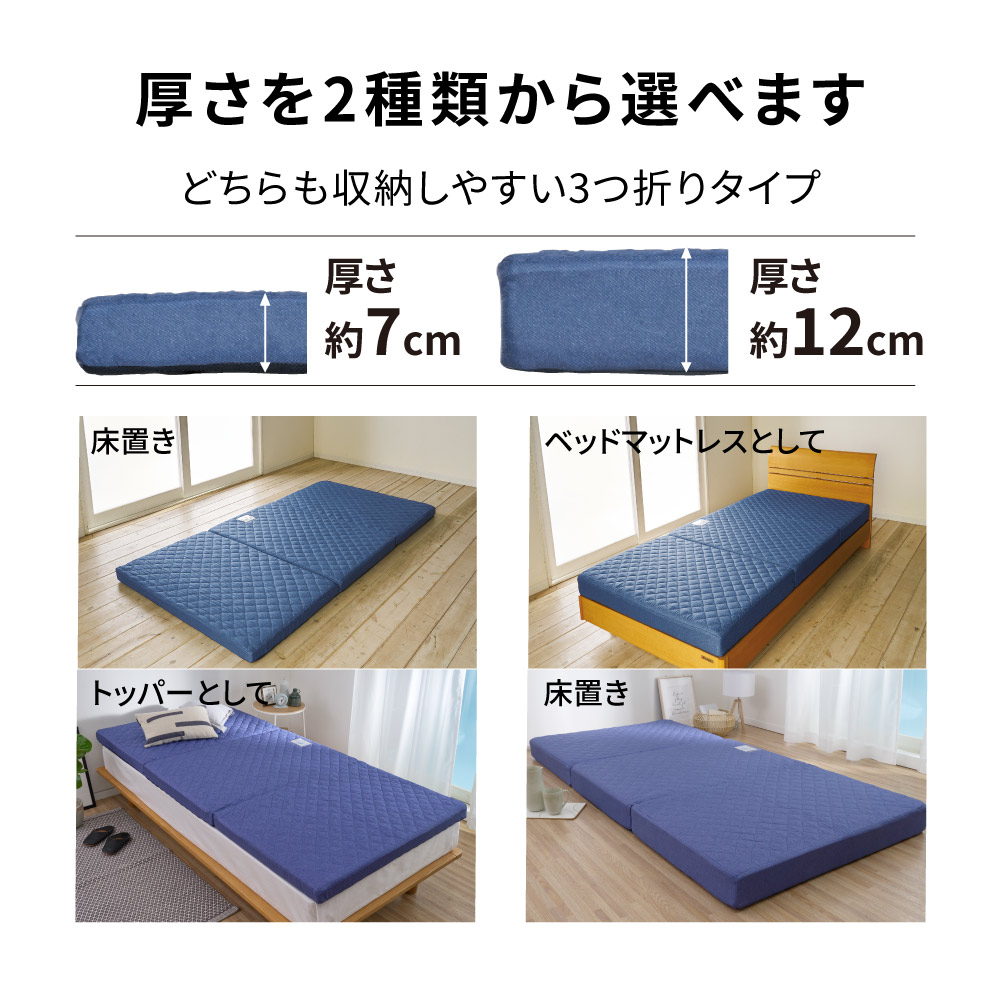 12cmタイプはベッドマットレスとしても、床に置いてリッチな寝心地の敷布団としてもご使用いただけます。