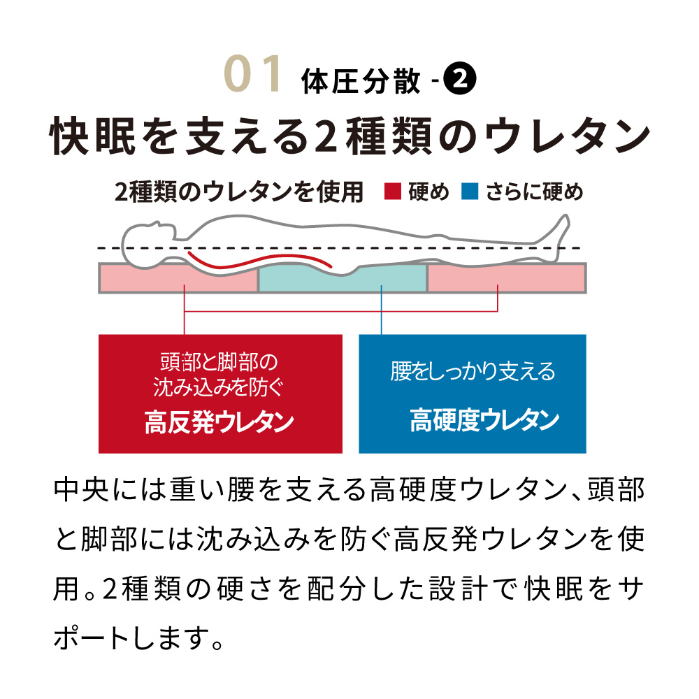 しっかり硬めのサポートで毎日の快眠を支えます。