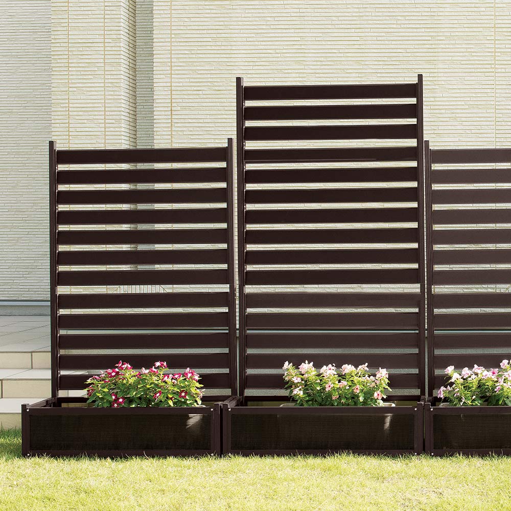 目隠しするだけで、庭が見違える! おしゃれなボーダー柄フェンスと、プランターボックスがひとつに。 隠したい背景を上手に区切り、気になる視線を和らげます。 お手軽に、お庭にプライベート空間をつくれます。◆隣家裏に庭が面していて雑多なものが背景に…外からの視線が気になる…と感じていませんか?◆人気のボーダー柄フェンスとプランターボックスがひとつに。◆園芸を楽しみながら背景を目隠しして、お庭にプライベート空間をつくることができるエクステリア用品です。◆窓の前に置くのもおすすめです。◆施工は不要、組立も簡単です。専門店のような仕上がりのプライベートガーデンがらくらく完成する簡易フェンス。耐久性の高いアルミ製◆耐久性が高く、変色しにくい機能性を持ち合わせながら、スタイリッシュなデザイン。◆グリーンが映え、お庭にも溶け込みます。ナチュラガーデニングをお好みの方におすすめ。◆見栄えの良い庭で、寄せ植えや鉢植えも楽しくなります。使いやすさを考えた、細やかな配慮。◆ボックス底部はすのこ形状で、水はけのよいつくり。鉢・プランターを入れて、彩り豊かなお庭に。◆視線を遮りながらも、風は通りぬけるつくり。くつろぎのガーデンスペースが生まれます。