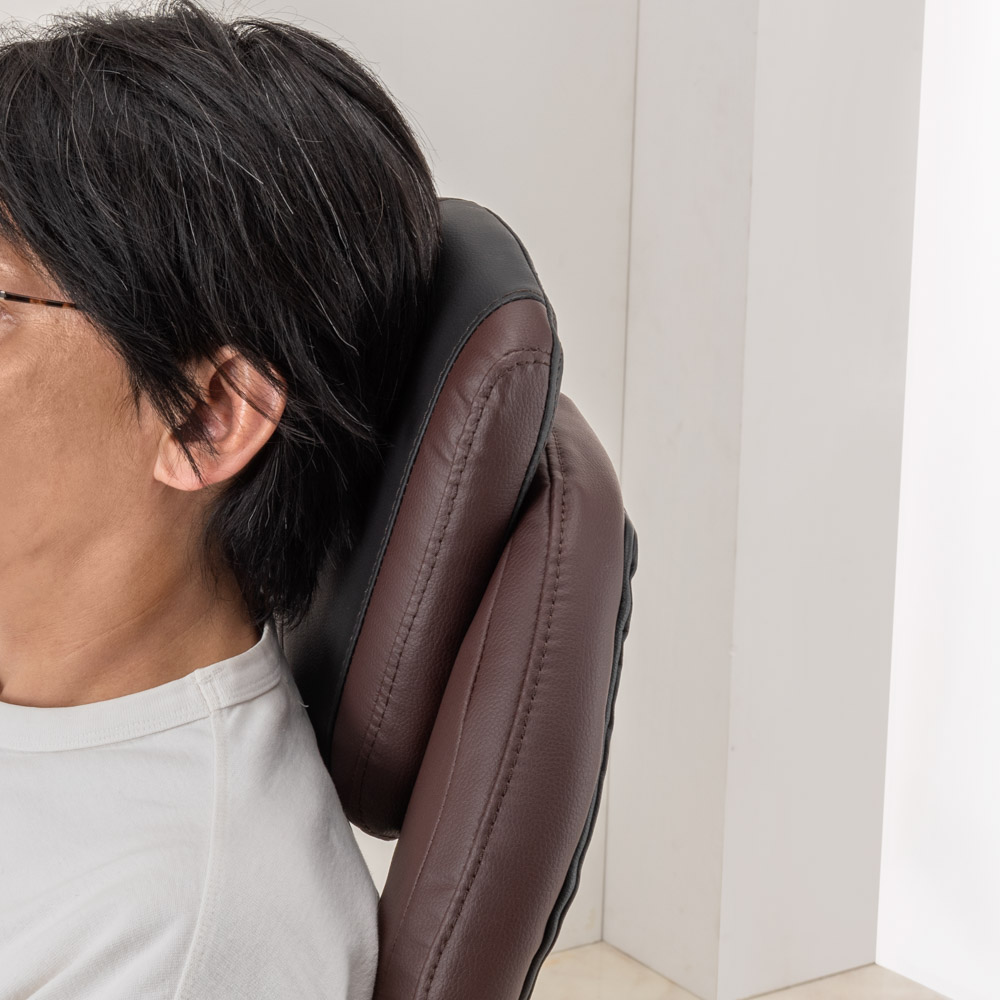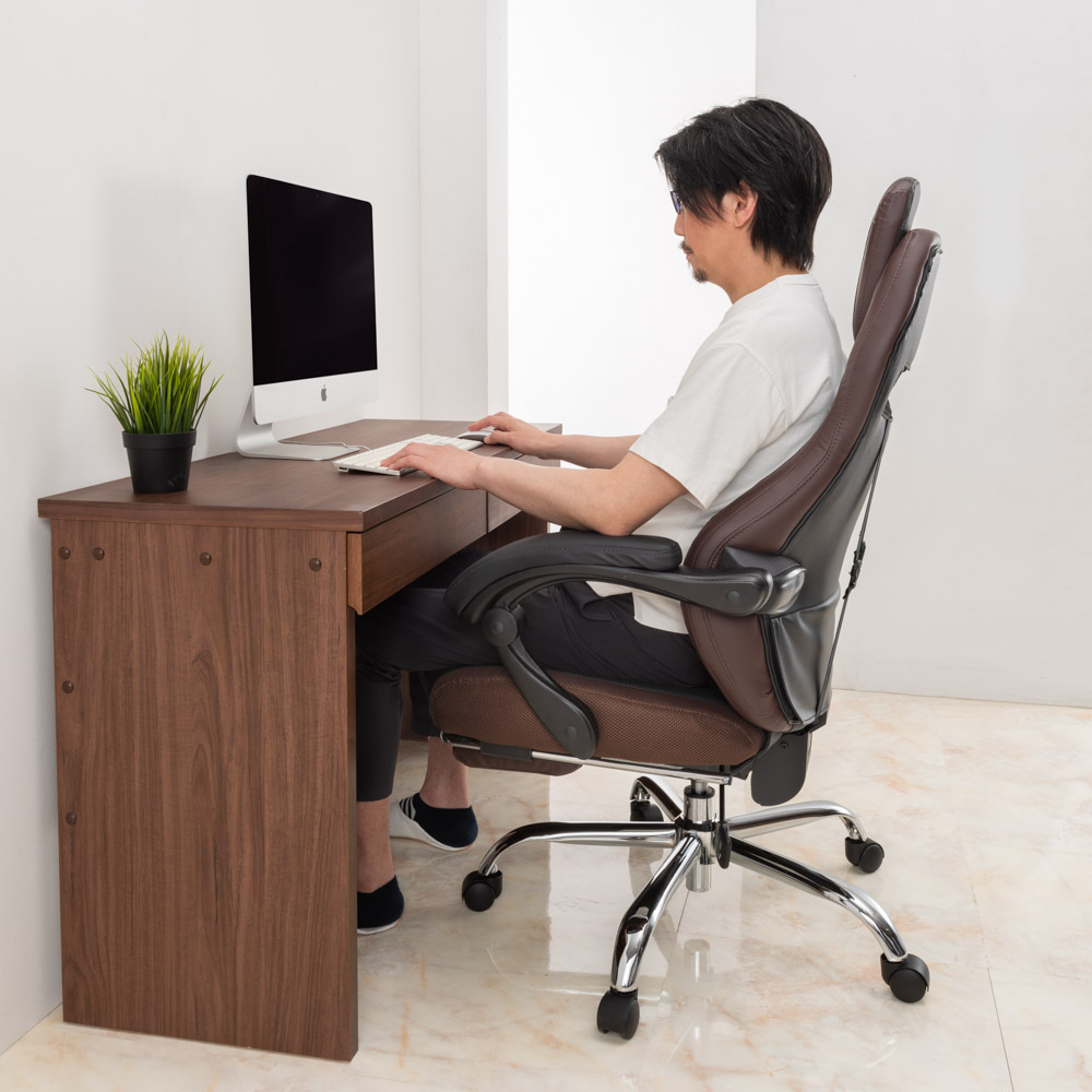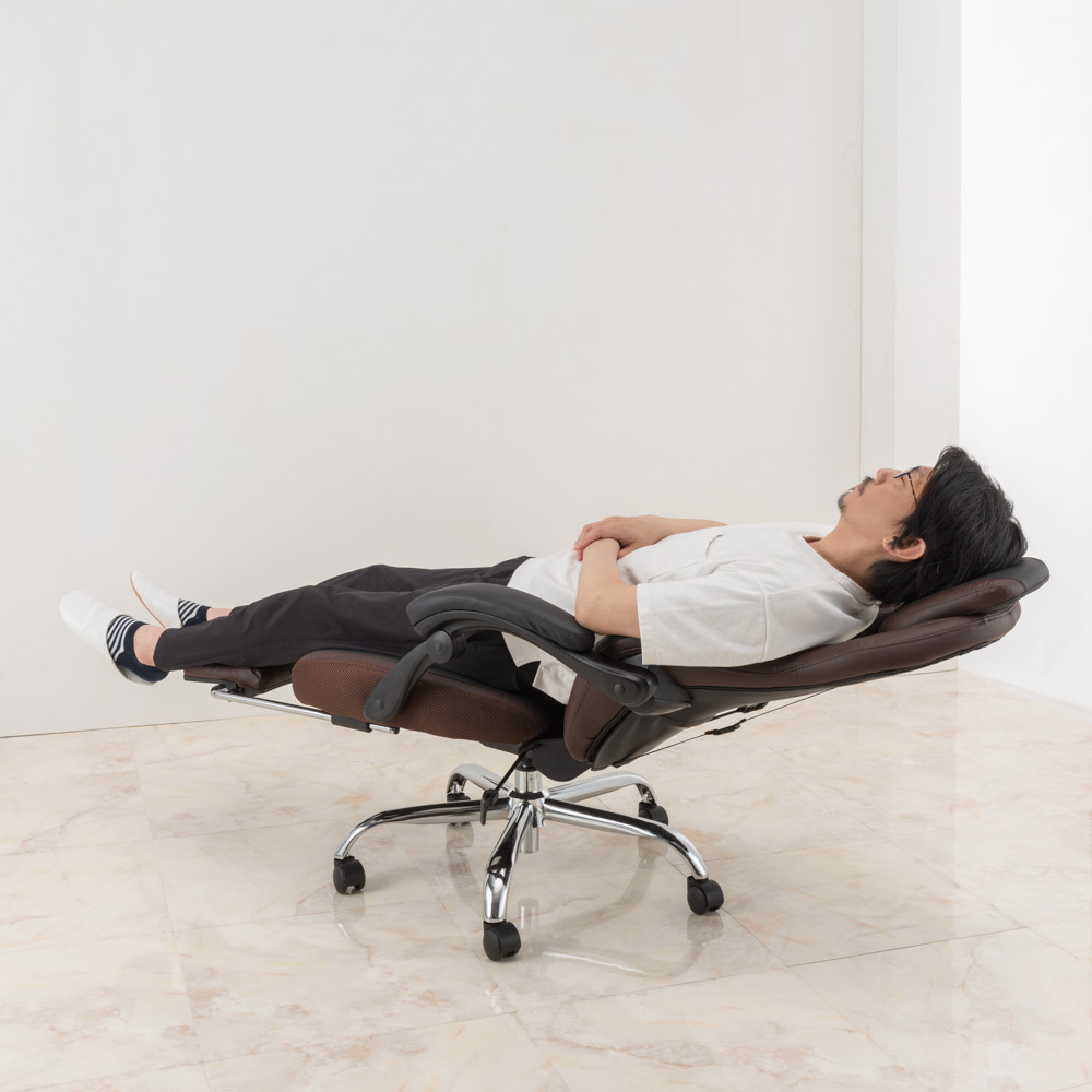 ブラウン。170度リクライニング時。作業の合間の休憩にも。