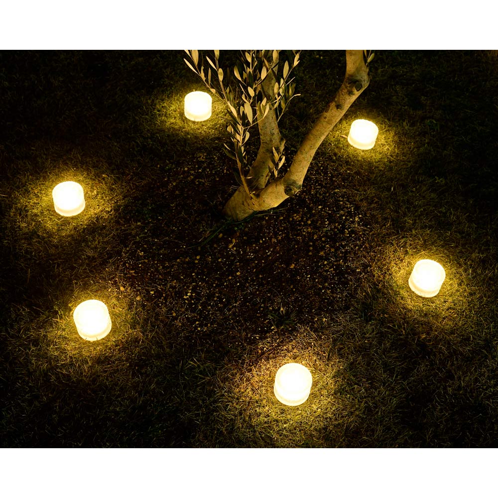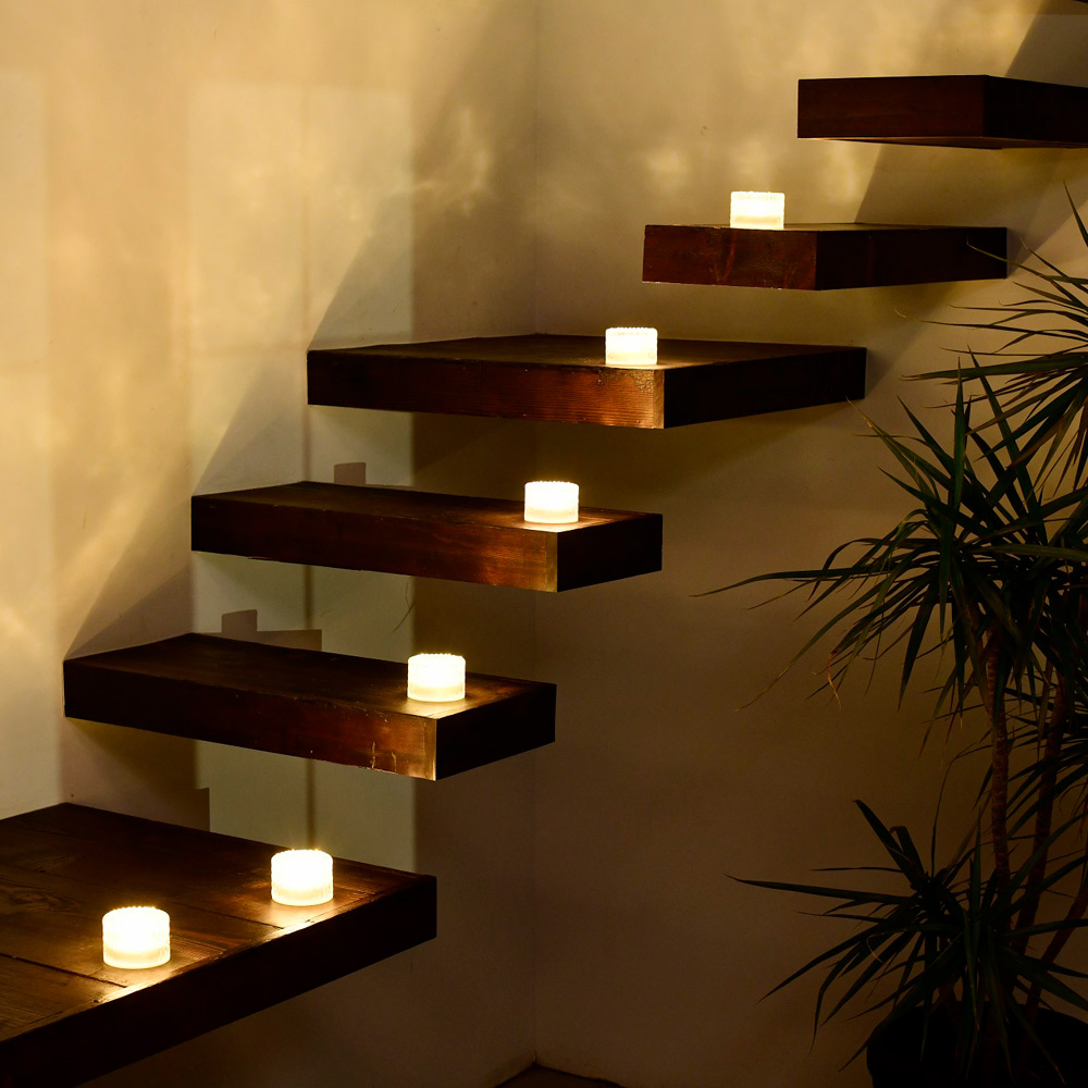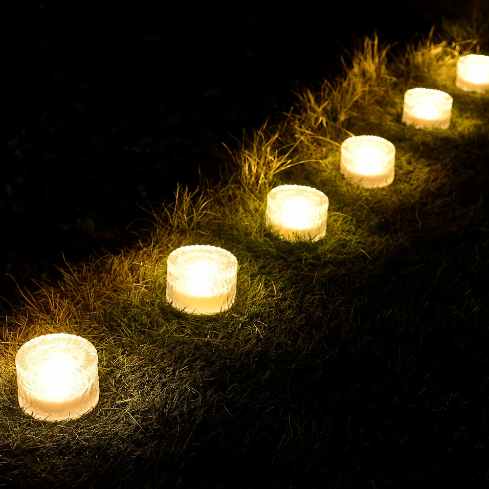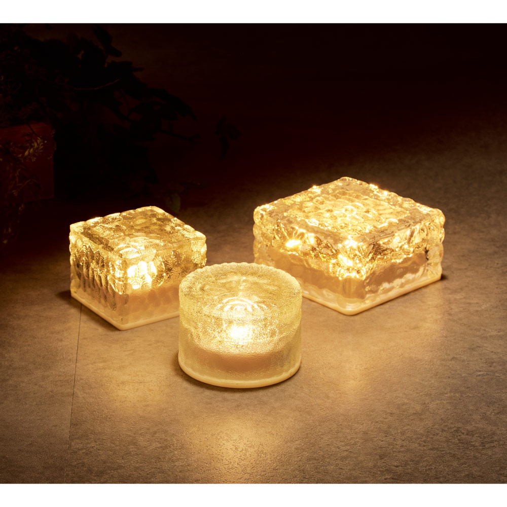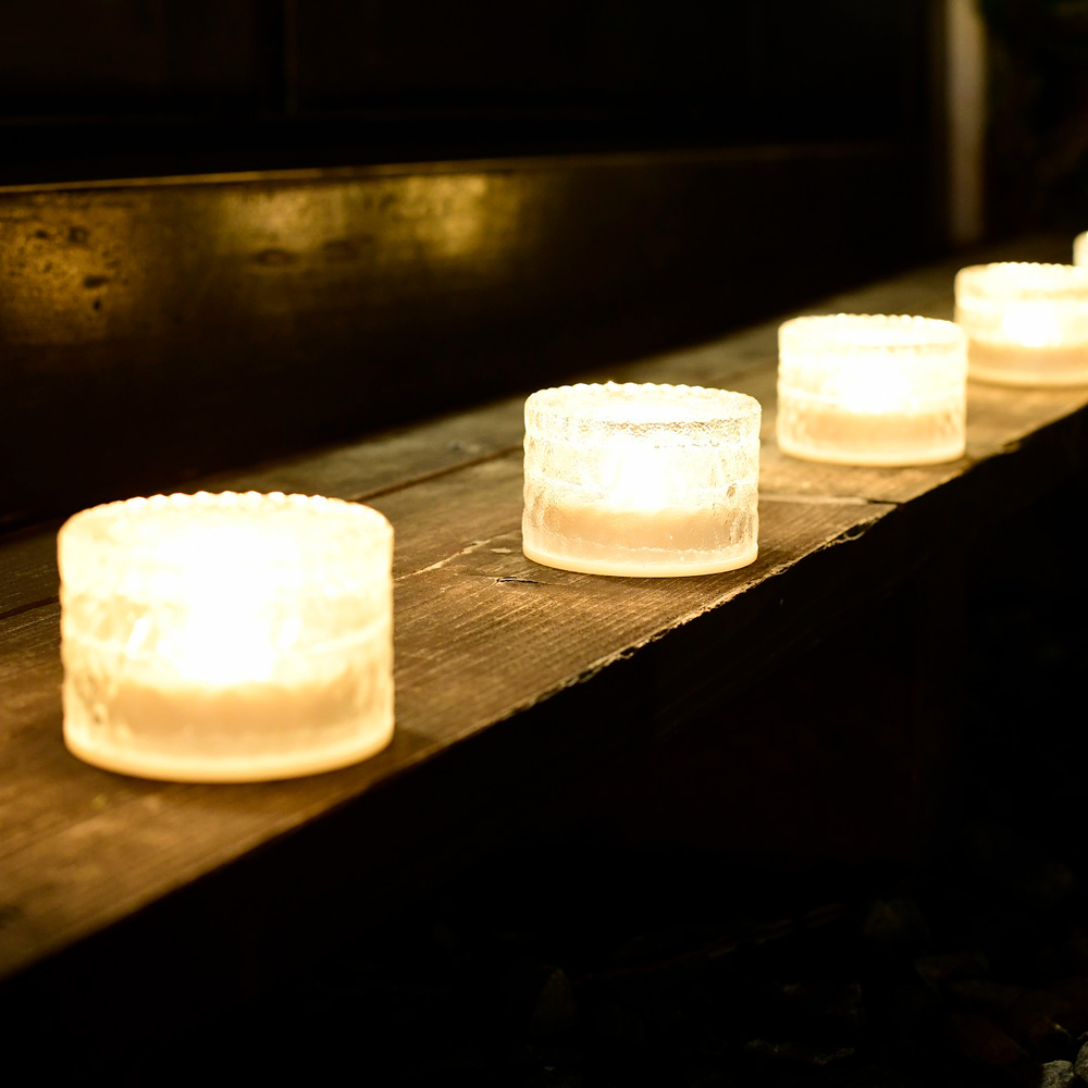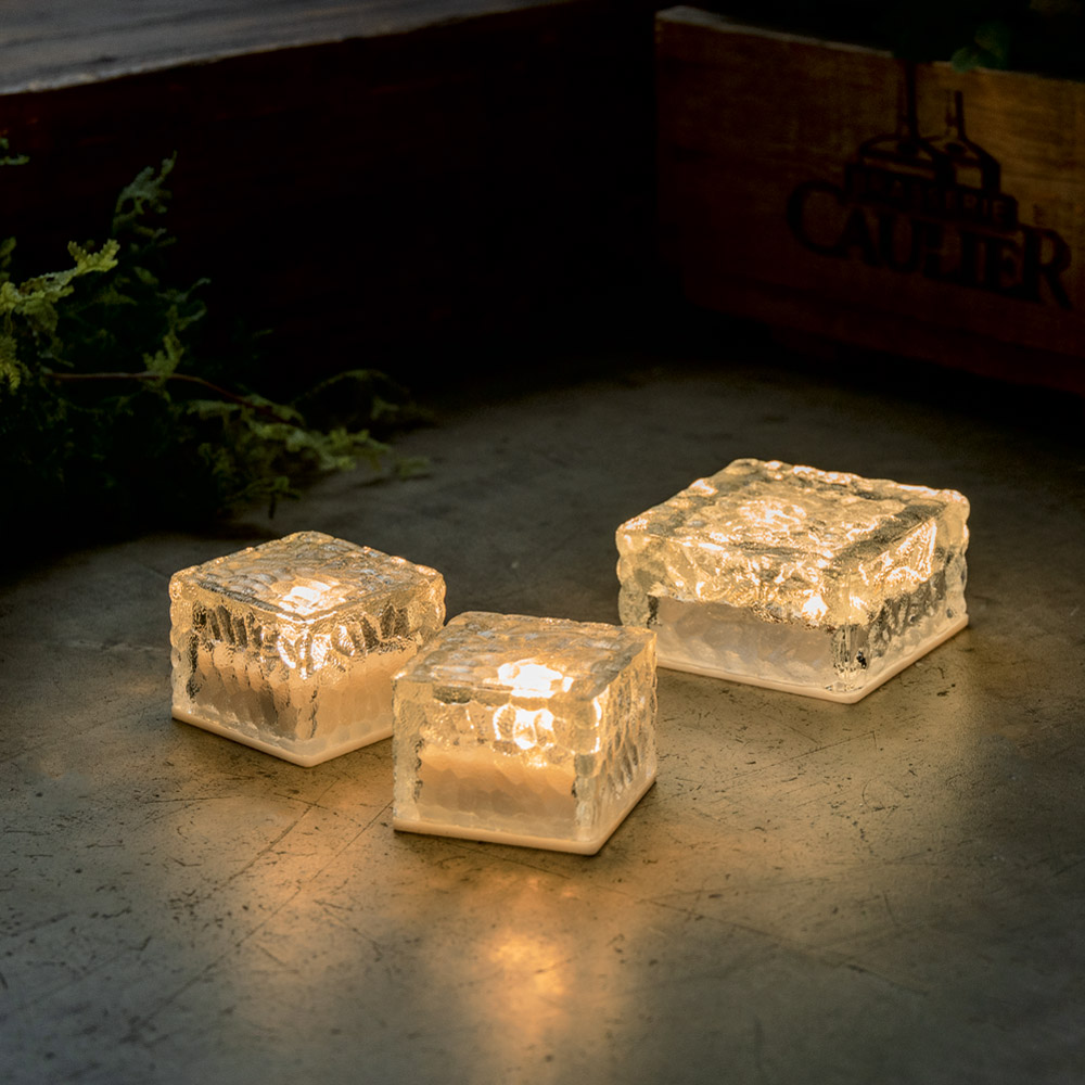ガラス越しの趣ある光がお庭のアクセントに。階段に置いても。ソーラーパネルが底面に内蔵された、すっきりとしたデザイン。豪雨や強風に晒されても安心のIP66防水防塵。・最大約750ルーメン・高輝度LED121灯・ソーラー充電・防水IPX3(軒下で使用)