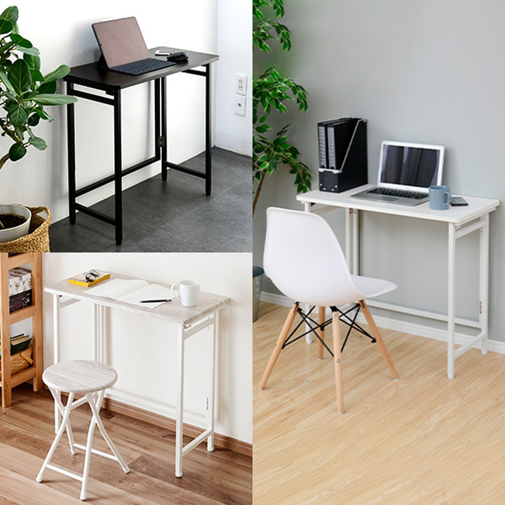 組立不要で使わない時は折りたたんで収納することも出来る折り畳みデスク。テレワーク時のPCデスクとしてもぴったりです。組立不要で、届いたらすぐ使えるのも嬉しいポイント。使いたい時だけさっと使える折り畳みデスク。●近年増加傾向のテレワークにもぴったりな折り畳みデスク。●使わない時はコンパクトにしまって置けるので、狭いお部屋でも問題ありません。●奥行も40cmのスリム設計で場所をとりません。 ●デスクワーク以外でも、ミシン台や作業台など、様々な用途でお使いいただけます。●お部屋のインテリアに合わせて、お好みの色をお選びください。