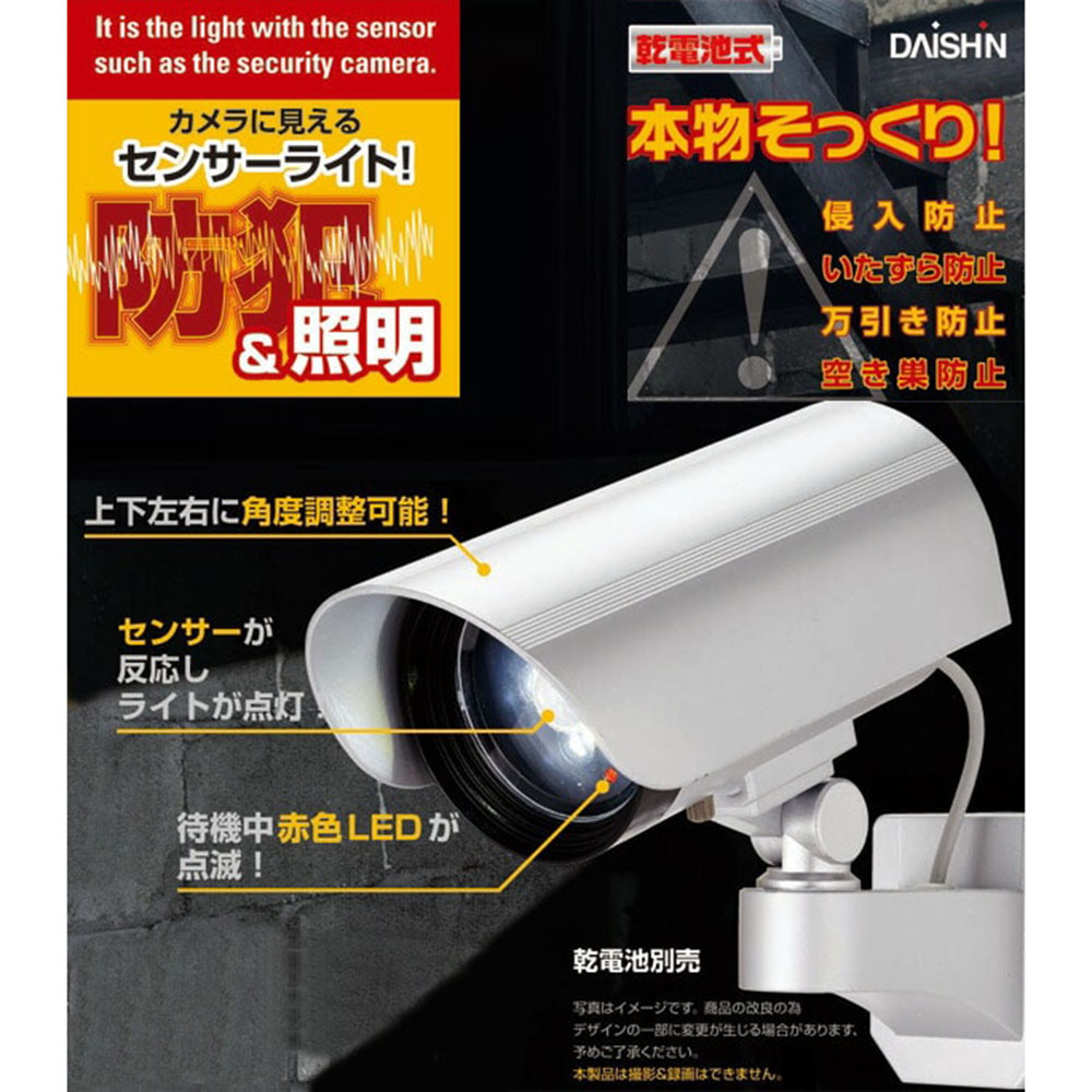 防犯カメラに見えるセンサーライト。センサーが動きを感知するとライトが点灯するので本当の防犯カメラのよう。電池式なので配線不要でどこでも取り付けできます。防犯カメラに見えるセンサーライト。センサーが動きを感知するとライトが点灯するので本当の防犯カメラのよう。電池式なので配線不要でどこでも取り付けできます。待機中にも赤色LEDが点滅します。