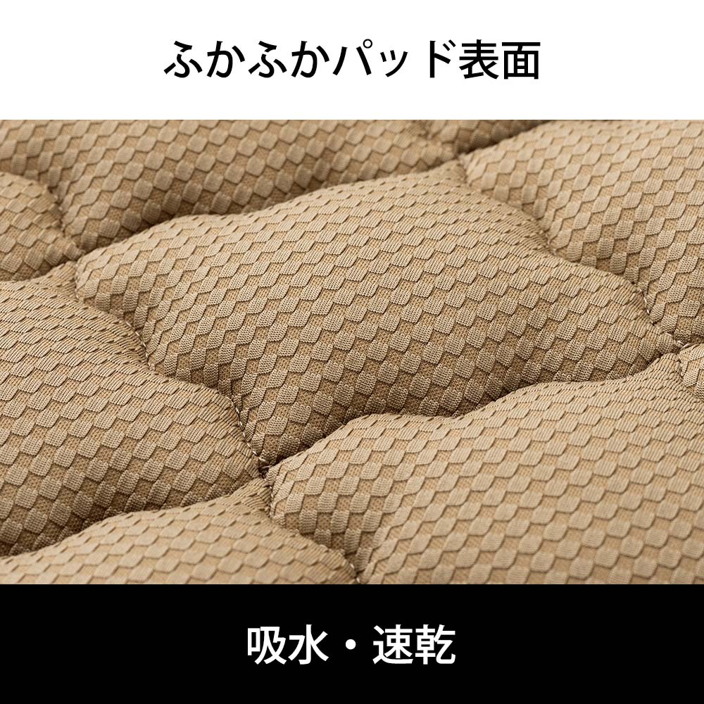 • 中わた入りの上層パッドで全身をふんわり受け止め、下層マットレスでしっかりサポート。腰部分はさらに硬めのウレタンを使用し、安心の寝心地です。