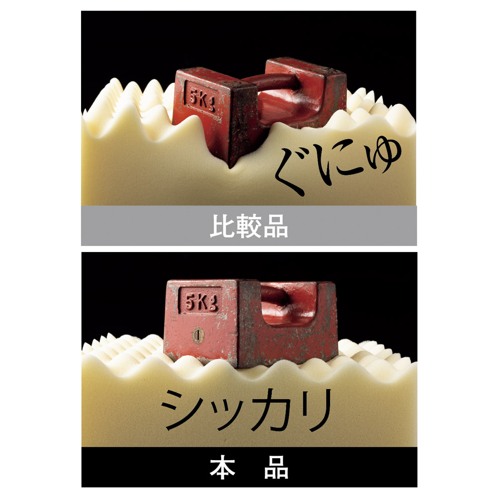 硬めのウレタンが重く沈み込みやすい腰もしっかり支えて、無理のない寝姿勢を保ちます。 ※比較品はメーカー従来品の低反発ウレタン。