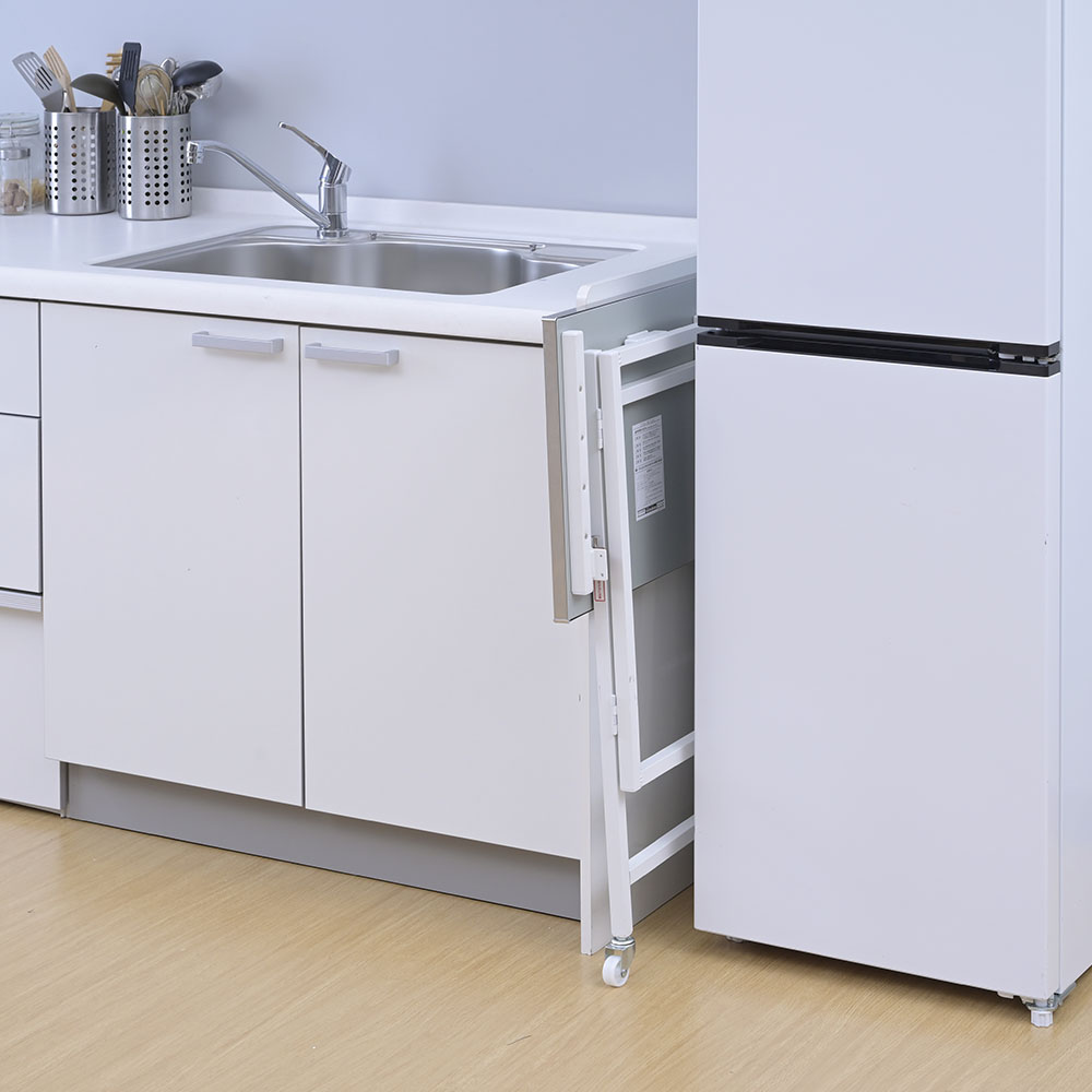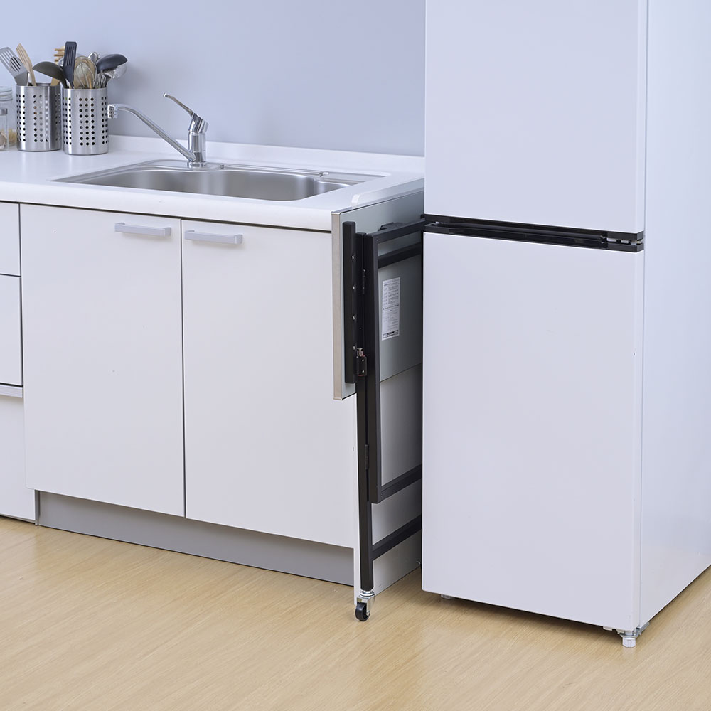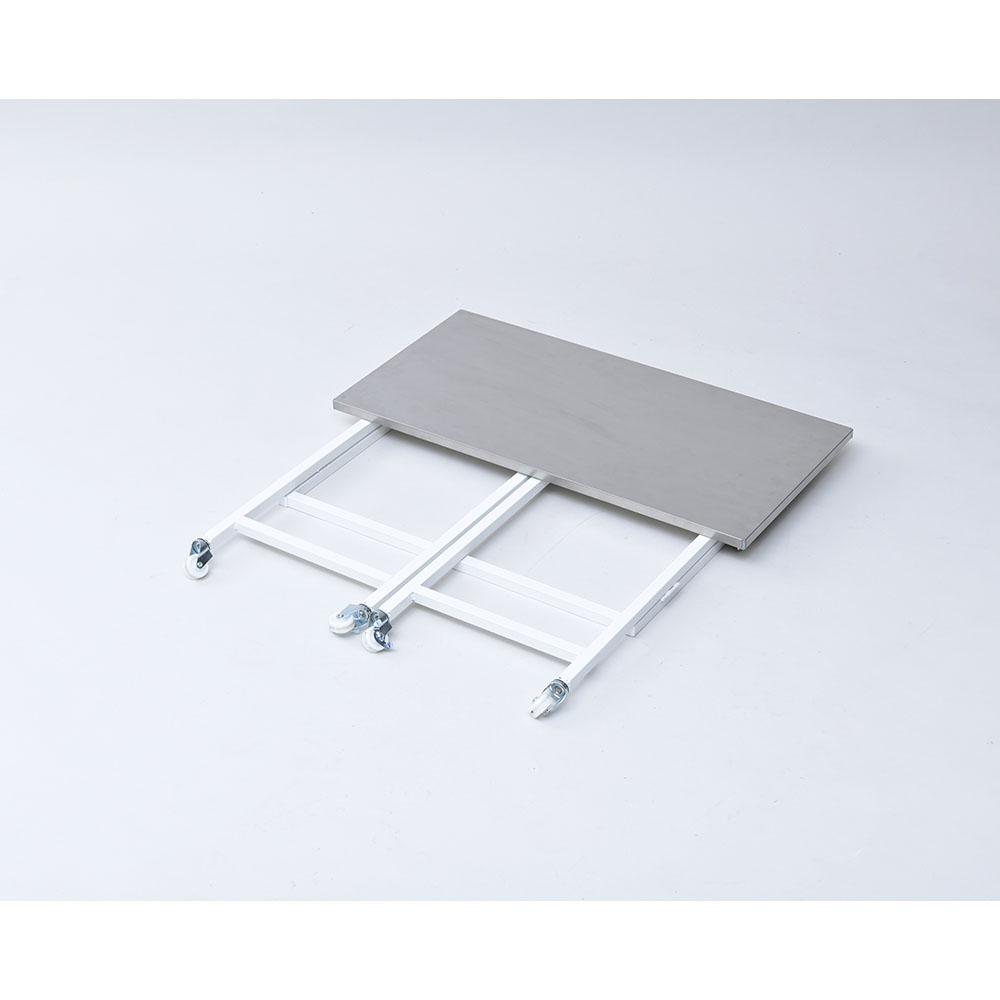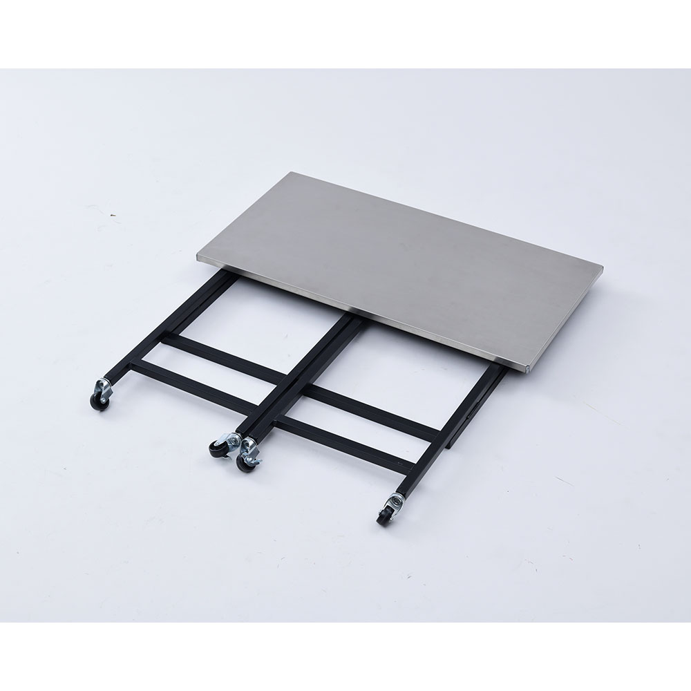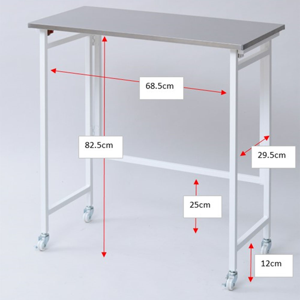 キャスターを取り付けるだけで使えるステンレス天板の折り畳みテーブル。一般的なキッチンカウンターと同じ高さなので、作業もしやすいのが魅力です。キッチンの作業スペースを増やせるシンプルなテーブルが登場です。●届いたらキャスターを付けるだけの簡単設置が可能●天板の高さは作業のしやすい高さに設計。●一般的なキッチンカウンターとほぼ同じ高さの仕様です。●天板は熱に強くてお手入れしやすいステンレス張り。●耐熱温度は約200℃です。●使わない時は折りたたんでしまっておくことも可能。●厚みは約7cmになるので、狭い隙間等にしまっておくことも可能です。●天板下にはゴミ箱を設置するのもおすすめ。●スペースを効率的に使うことが出来ます。