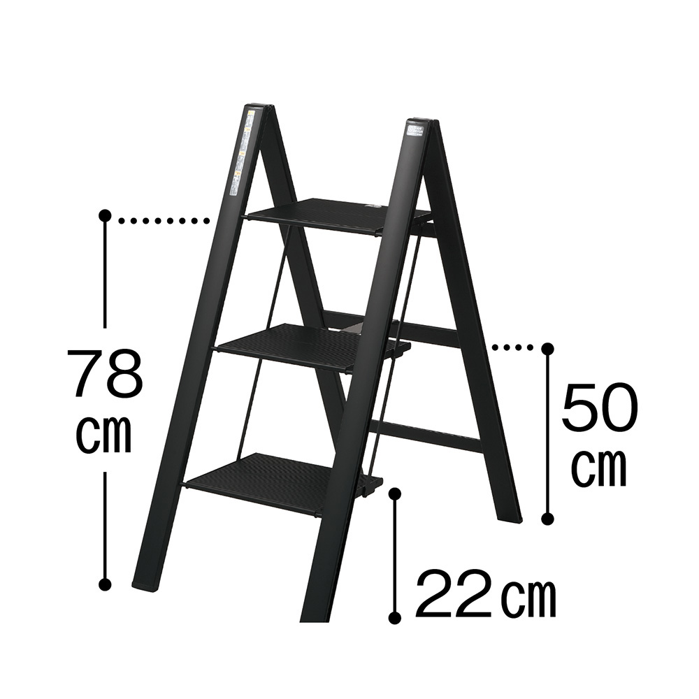 座れる脚立。限られたスペースを生かす工夫、使い勝手のよさを究めた仕様、さらに、インテリアとしてのデザイン性にこだわりました女性でもラクに持ち運べるアルミ製の軽量ステップ。広いステップと幅広の脚が安定感をサポート。■グッドデザイン、ロングライフデザイン賞受賞。■折りたたみ時4.8cmの薄型なので、すき間に収納できます。■天板幅33.0cmの幅広タイプで安心の乗り心地、また腰を掛けての作業にも最適。【ここがポイント】●軽量なアルミ製ながら、安心の「SGマーク」を取得。●機能的でスマートなデザインのステップはインテリアにもなって活躍の場も広がります。●どのステップも広いステップ面(33×26cm)なので、安定していて足が疲れにくく、登った時の作業性が抜群です。●幅広のフレームがしっかりと支える耐久性のある踏み台です。●収納時は48mmのコンパクトな厚みなので、狭い隙間にもスッと入ります。●機能性や安全性を考慮し、スムーズな開閉や持ち運びに便利な形状です。●軽量でスリムなので、持ち運びもラクラク!●2010年度にグットデザイン賞の中でロングライデザイン賞を受賞。●長年愛されるスッキリとしたデザインです。