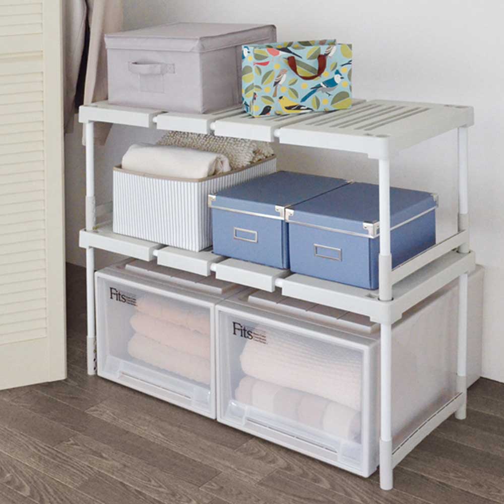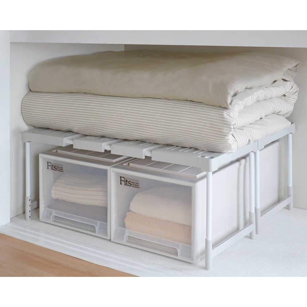 前後に並べて、布団収納や収納ケースの整理にピッタリ。 ※お届けはラックのみです。フィッツケースは含まれません。