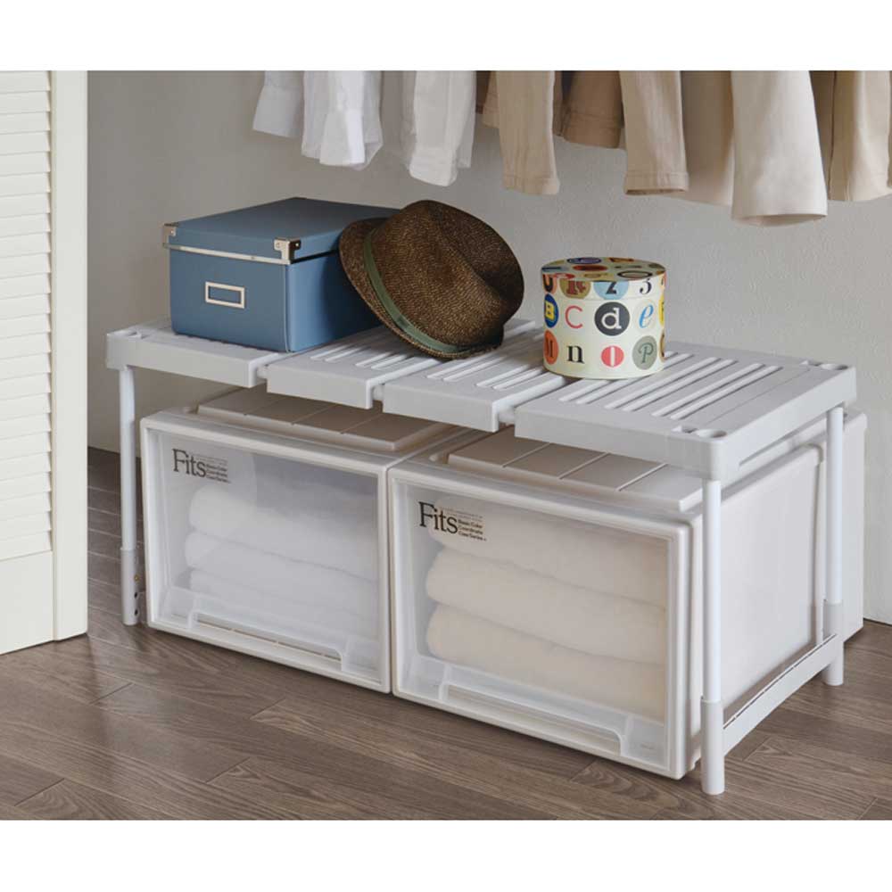 幅と高さのサイズを変えて押し入れやクローゼットにピッタリ。通気性も確保するすのこ状のラックが収納を快適にします。2個組です。幅と高さを変えて押し入れにピッタリ。通気性もOK。幅伸縮と高さ調節機能により、押し入れやクローゼットのスペースに合わせてぴったりに設置可能。前後・左右に並べて、上下に積み重ねてと、レイアウトも自在。■押し入れで■クローゼットで■前後に並べて■横に並べて■縦に重ねて■収納物の大きさや用途に応じて高さを調節