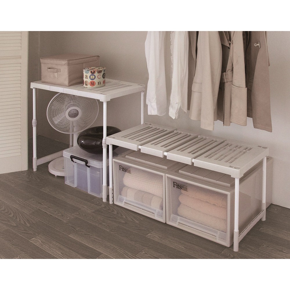 幅と高さを変えて押し入れにピッタリ。通気性もOK。幅伸縮と高さ調節機能により、押し入れやクローゼットのスペースに合わせてぴったりに設置可能。前後・左右に並べて、上下に積み重ねてと、レイアウトも自在。幅と高さを変えて押し入れにピッタリ。通気性もOK。幅伸縮と高さ調節機能により、押し入れやクローゼットのスペースに合わせてぴったりに設置可能。前後・左右に並べて、上下に積み重ねてと、レイアウトも自在。■押し入れで■クローゼットで■前後に並べて■横に並べて■縦に重ねて■収納物の大きさや用途に応じて高さを調節 脚部は回転式で無段階調節(48〜80cm)が可能。