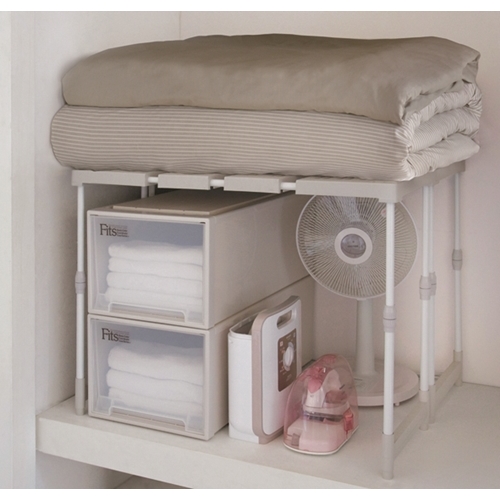 前後に並べて、布団収納や収納ケースの整理にピッタリ。 ※お届けはラックのみです。フィッツケースは含まれません。