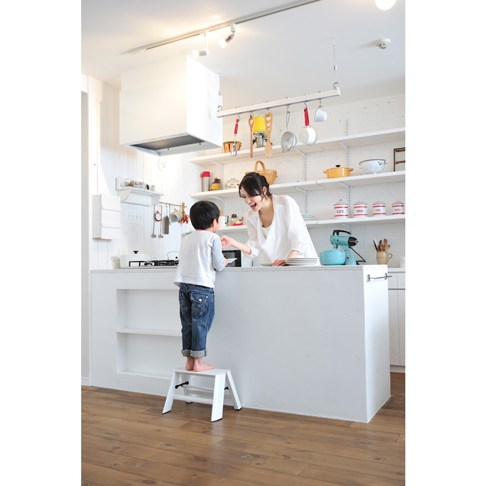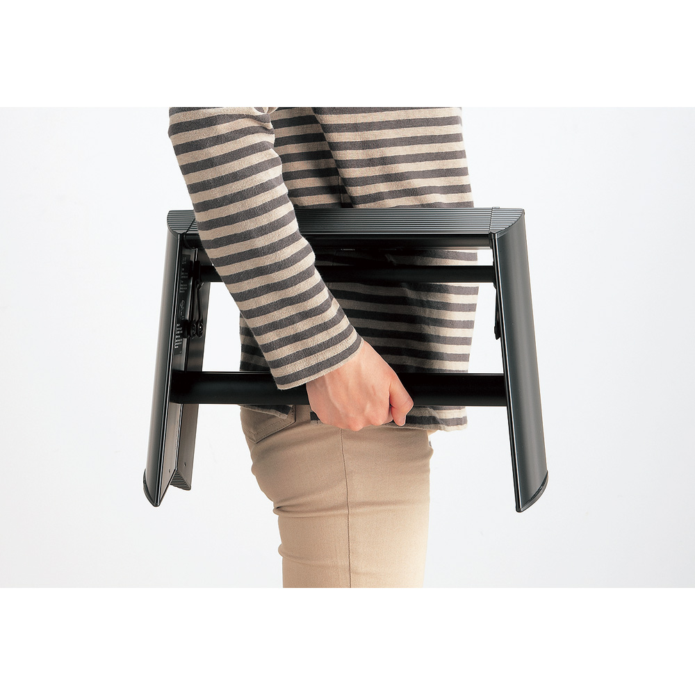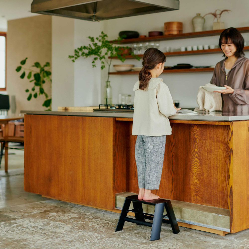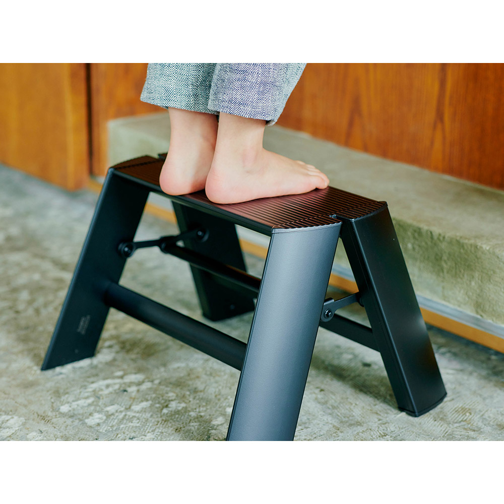 ちょっと手が届かない、そんな時に便利な踏み台。子どもの踏み台にもぴったりの1ステップ。キッチンや洗面所に手軽に持ち運べます。ちょっと手が届かない、そんな時に便利な踏み台。コンパクトながら耐荷重100kgでSGマーク付きだから安心です。1.7kgととっても軽量で片手でサッと畳めるから移動もラクラクです。世界に認められたデザイン ■IFデザインアワード、レッドドットデザインアワード、グッドデザイン賞を受賞。美しいフォルムと機能美で数々のデザイン賞を受賞しました。■外観からビスが見えないすっきりとしたデザイン。■使い方次第で、日々の暮らしがよりスマートに、よりスタイリッシュに。カタチだけではない、その先にある時間もデザインしました。■脚立の置き場所といえば押入れや物置が定番かもしれませんが、あえてお部屋に置いておきたくなる、美しいデザインの脚立です。■デザインは気鋭のデザインユニット「METAPHYS」が担当しました。安全性だけでなく使いやすさにもこだわりました ■表面にアルマイト加工を施す事により、見た目の質感に加えて高い耐久性や心地よい手ざわりを実現。(ホワイト・ブラック)■幅が広く、滑りにくい波型ステップ。■簡単・安心に取り扱えるワンタッチバー。■折りたたんだ状態でも自立可能。■製造は梯子・脚立の専門メーカー、創業60年の長谷川工業です。【メタフィス】METAPHYSとは、株式会社ハーズ実験デザイン研究所がデザイン開発、ブランディングを行っているデザインブランドで、ブランドコンセプトに共感を抱く多くのパートナー企業により構築されています。全ての商品のデザイン、プロデュースを、ハーズの代表であるムラタ・チアキが手がけ、それぞれの企業の持つコア・コンピタンスに基づいた商品開発を行っています。METAPHYSの語源は、「すべての存在の基本原理を追及する学問」を意味するMETAPHYSICSです。そのモノの存在意義、最もあるべき姿を1から考え直す作業を経て、一つ一つ再構築し、出来上がったものがMETAPHYSの商品です。メタフィスはこの思想を共用する企業や個人の協業でつくられたブランドです。それぞれの専門分野で、得意な商品を、共通思想によって造り出していきます。METAPHYSは、いくつもの企業が連携して、「モノのあり方」、「モノの創り方」、「モノの流れ」を本質へと導くデザイン事業なのです。