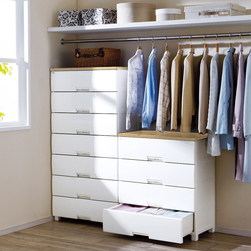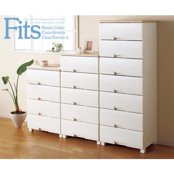 フィッツケースの機能性にインテリア性をプラスした、リビングにもおすすめのチェスト 樹脂製でお手頃な価格ながら、木天板で高級感があり、引き出しに飛び出しを防ぐロックがついて機能的な衣類収納。ロングセラーの大ヒット収納アイテムであるフィッツシリーズのチェスト。フィッツケースの収納力を備え、さらにデザインを洗練させた衣類収納タンスです。側面・背面はすき間がなく、ホコリが入りにくく強度も充分。引き出しは軽々と出し入れできるサイドローラー付きで、不意な飛び出しを防ぐロック機能を搭載。引き出し全段入れ替え可能です。床に傷がつきにくくなる滑り止めシール付き。サイズバリエーションが豊富で、クローゼットの空きスペースに置けるコンパクトサイズから大容量タイプまで様々にご用意。木天板が高級感を生み出し、リビングに置いても違和感ないデザイン性を持ち合わせています。〜掃除や移動時に便利な専用キャスター対応〜別売りで専用キャスターをご用意しております。詳しくはこちらから⇒ 専用キャスター
