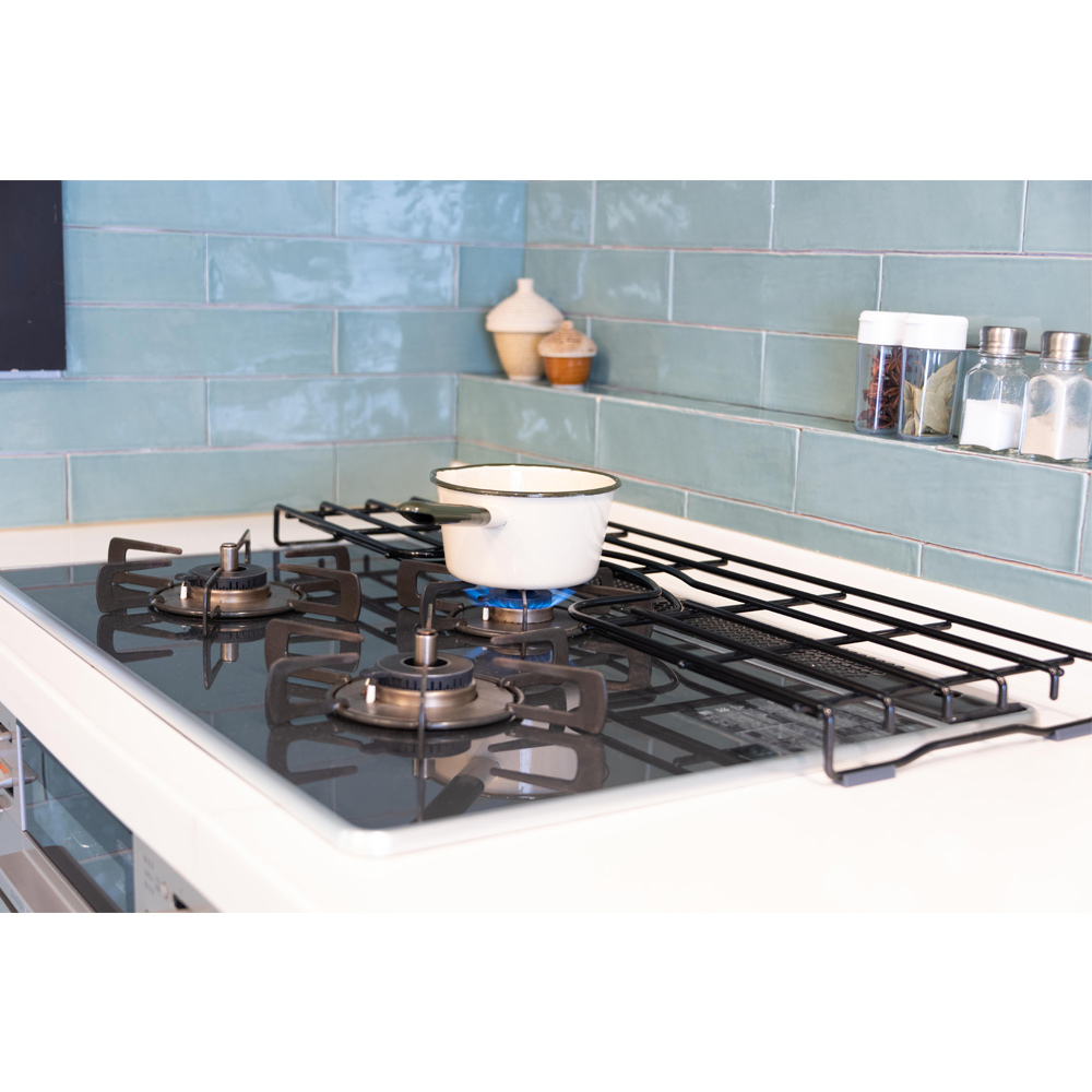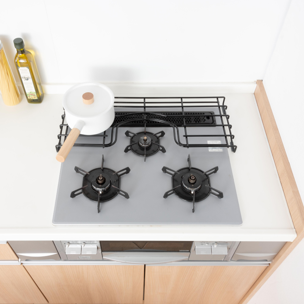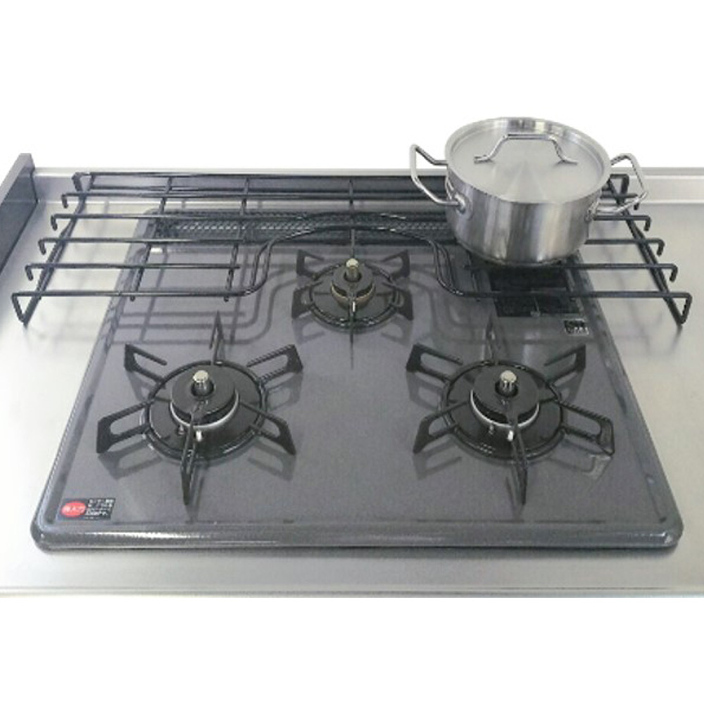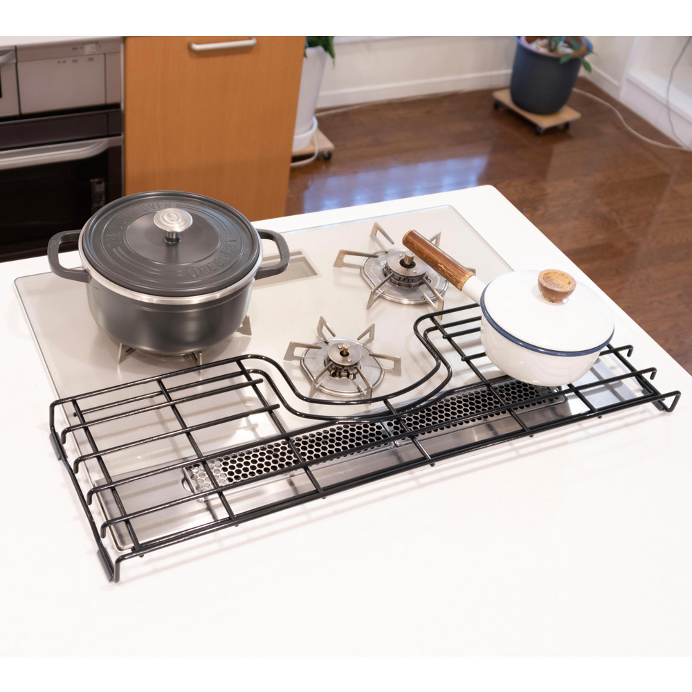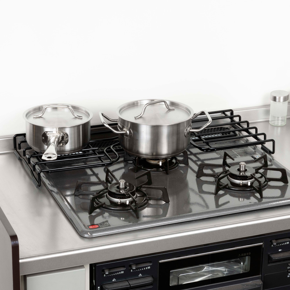 外国製みたいなおしゃれな黒いホーロー。絶妙な高さで鍋をラクに置けます。他にあまりないホーロー製。おしゃれです頑丈な太ワイヤーにつややかなホーロー加工を施しました。まるで海外のアンティークアイテムのようでとってもお洒落です♪使い勝手もグッドです!美しいだけではありません。ホーロー加工をしてあるので、表面はツルツルしています。そのため油汚れも落ちやすく使い勝手も◎です。五徳とほぼ同じ高さなので、鍋ややかんをスライドしてラクに乗せられるのが便利です。熱々のママの鍋を置いてもOKです。そのまま魚焼きグリルも使えます!設置した状態で魚グリルも使えます。いちいち外さなくていいのでとっても便利です。