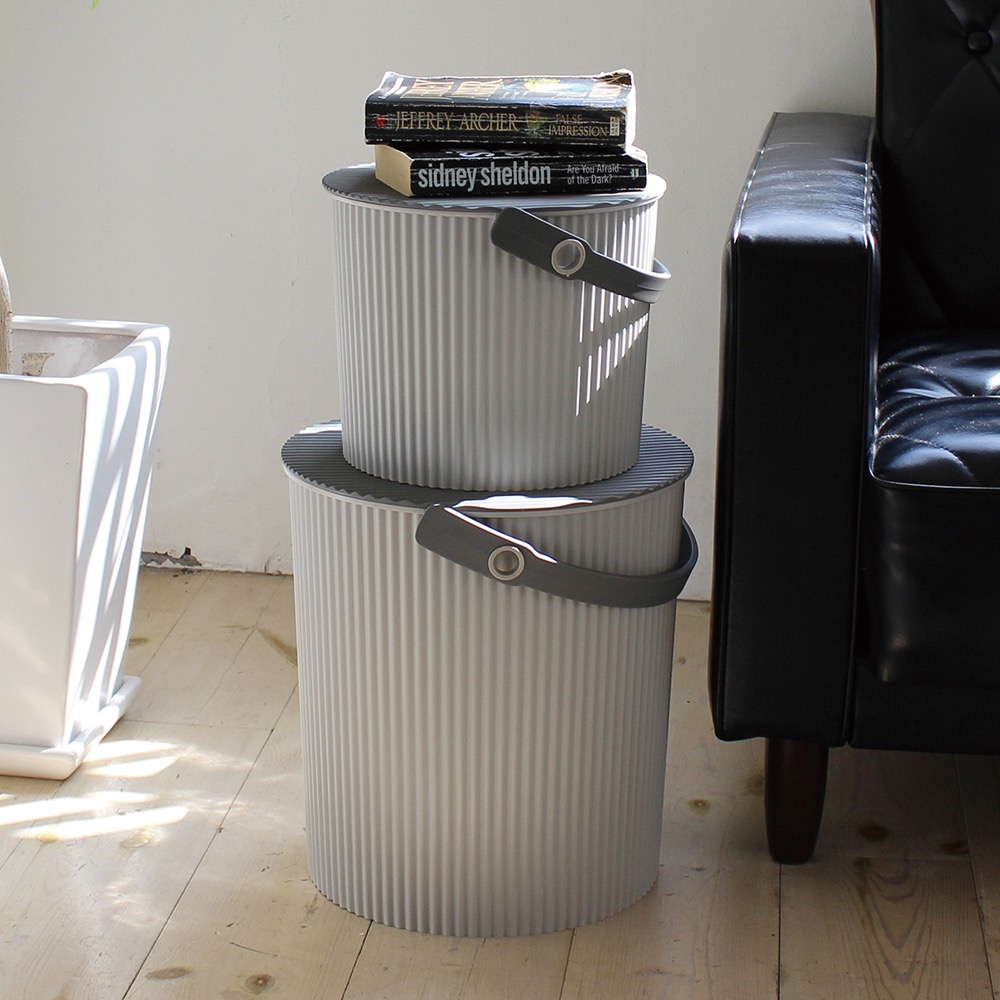 淡く美しい発色で、ガーデニングにはもちろん、キッチンやリビングの収納や子ども部屋やペット用品の収納にも。大小2個セット。丈夫で万能なガーデンバケット◆園芸道具や土、肥料を収納できるバケットです。◆丈夫な樹脂素材で耐候性もばっちり。◆カラーは景観を損なわない定番のグリーン。◆縦の細かいラインが特徴、合わせやすいシンプルなデザイン。簡易的な椅子としても◎◆丈夫な素材を使用しているので、腰掛としての役割もOK◆耐荷重約150Kgと安心の座れる設計。◆大も小も座ることが可能です。◆軽量かつ収納付き、草刈りなどの作業も座りながら行えます!嬉しい機能はまだ他にも◆フタつきなので重ねられ、収納も省スペースに。◆樹脂製なので、ささくれ等もなくお子様とも安心してご使用いただけます。◆ハンドル部分にホースを通せる穴があるので、水を使う作業に重宝します!◆大小セットで、これだけの機能がついてのコストパフォーマンスに注目です!!