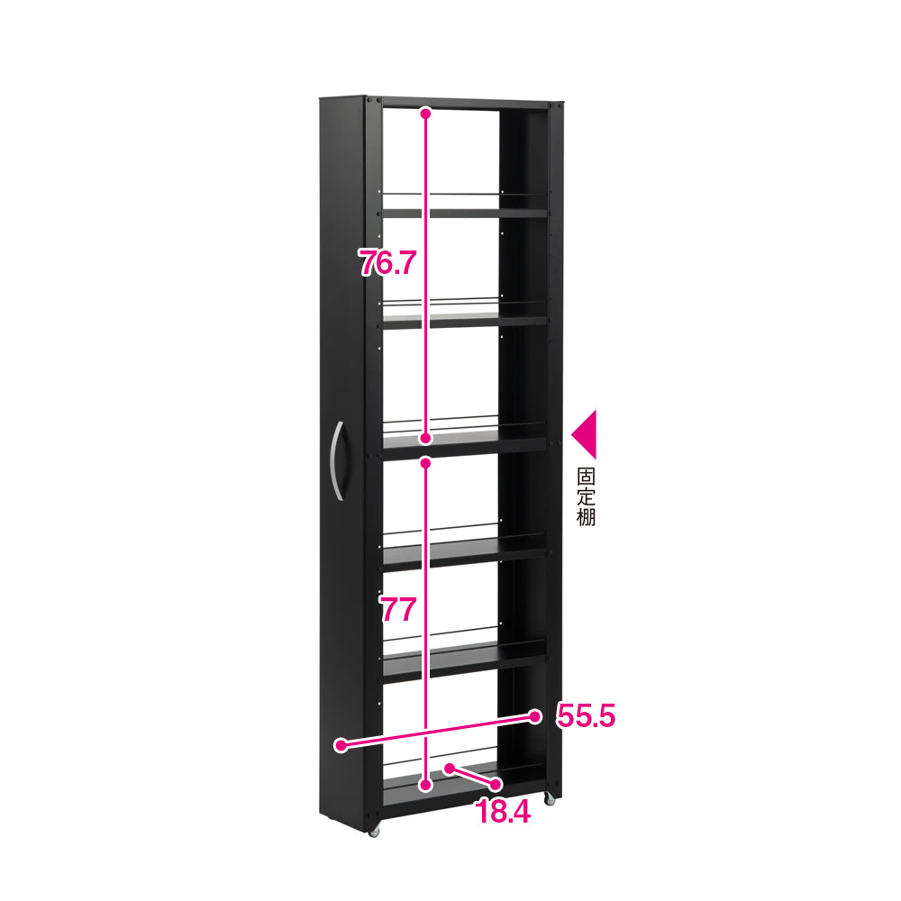 使用イメージ(イ)ブラック スリムなのに大容量。180cmの高さを活かして、調味料からペットボトルまでたっぷり収納できます。 ※写真は別売りのハイタイプ幅15cmです。