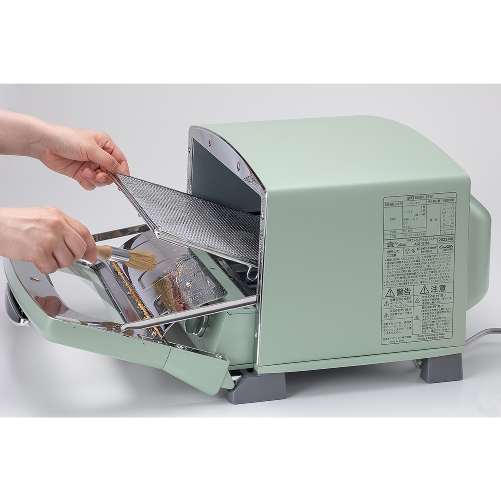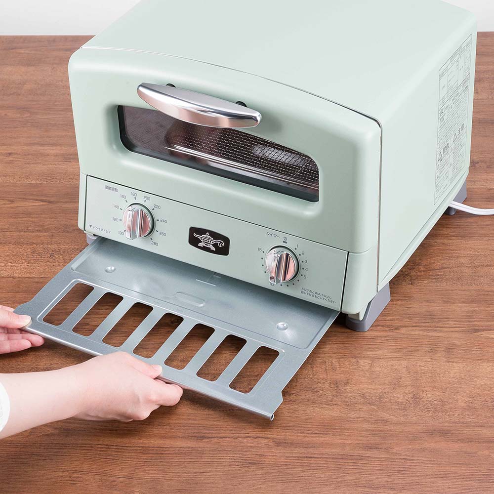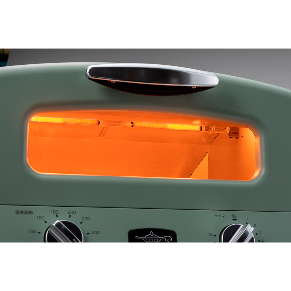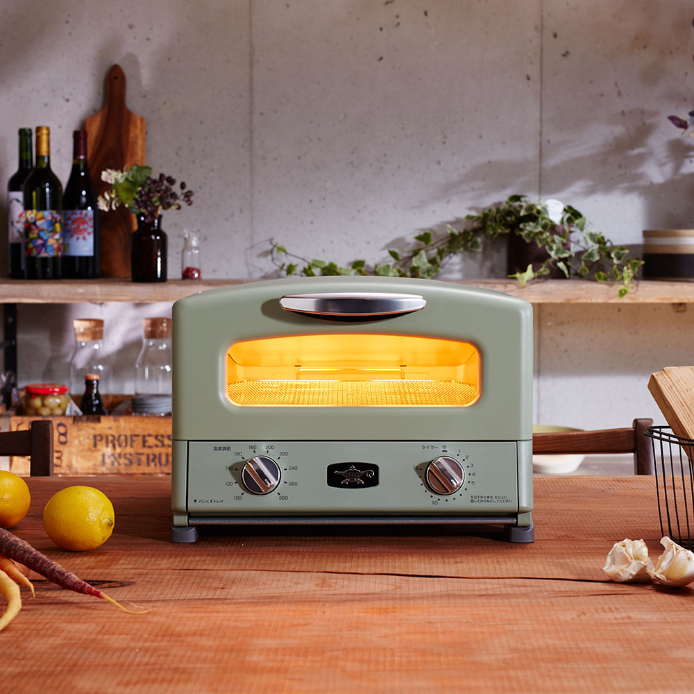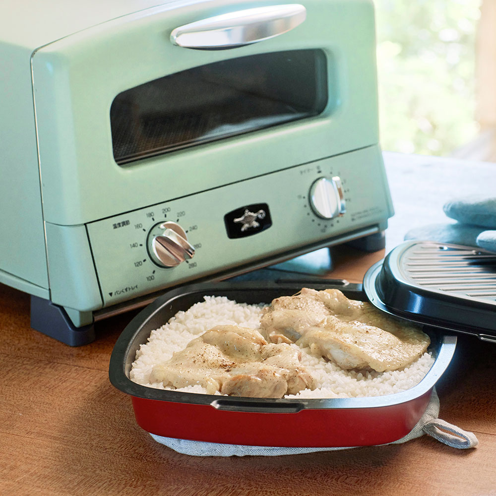 外カリ中モチの美味しいトーストはもちろん、グリルパンで料理の幅が広がるグリル&トースター。特許技術の0.2秒で発熱する「遠赤グラファイトヒーター」によって外はカリカリ、中はモチモチのトーストを焼くことができます。グリルパンは内部の温度を330℃まで高めることも可能で、焼く・煮る・蒸す・炊くなど多彩な料理が可能です。また、セラミック塗装により焦げ付きにくくなっています。さらに、焼き網が可動式になっており手が届きにくい扉周りのお手入れもラクラク。