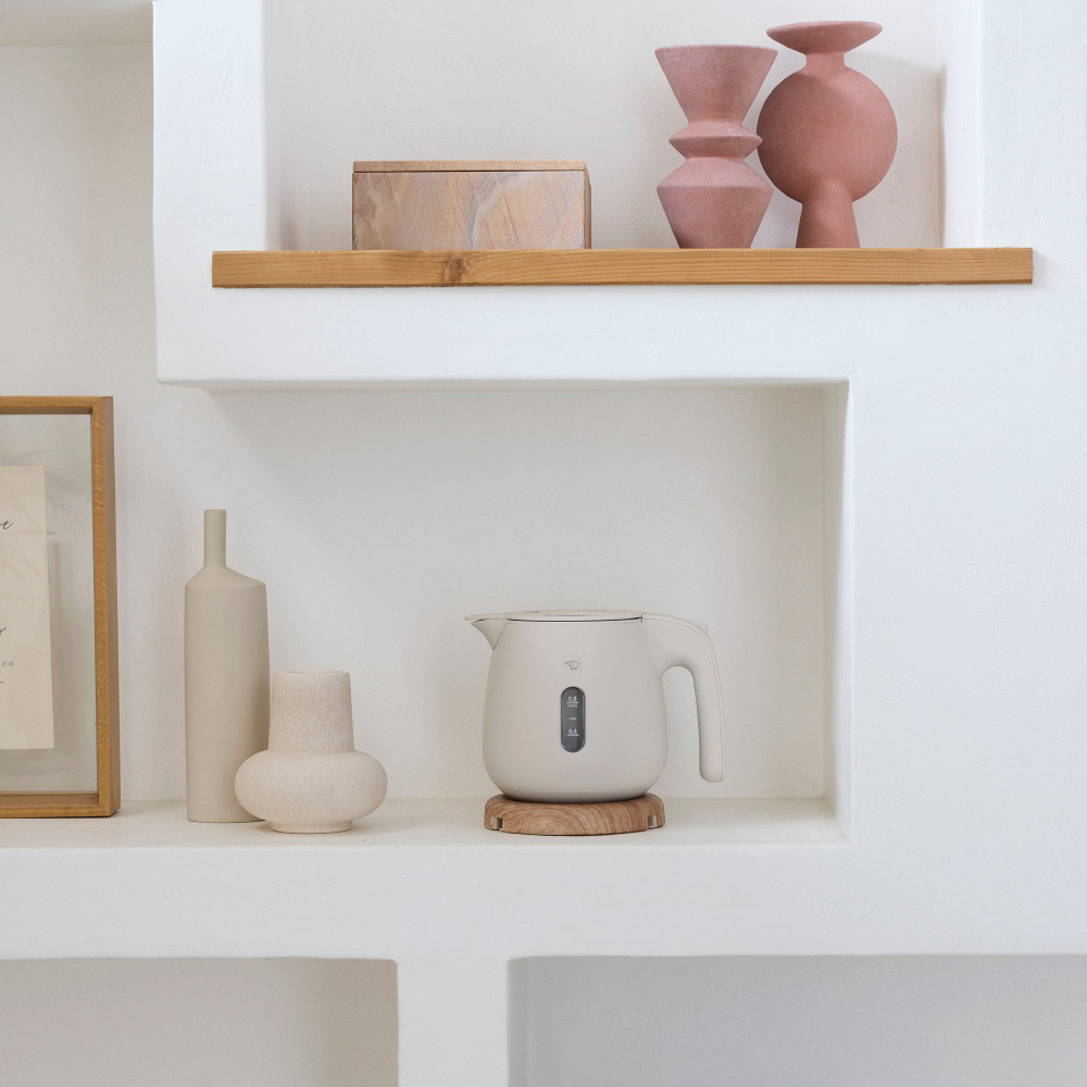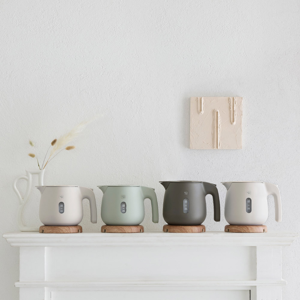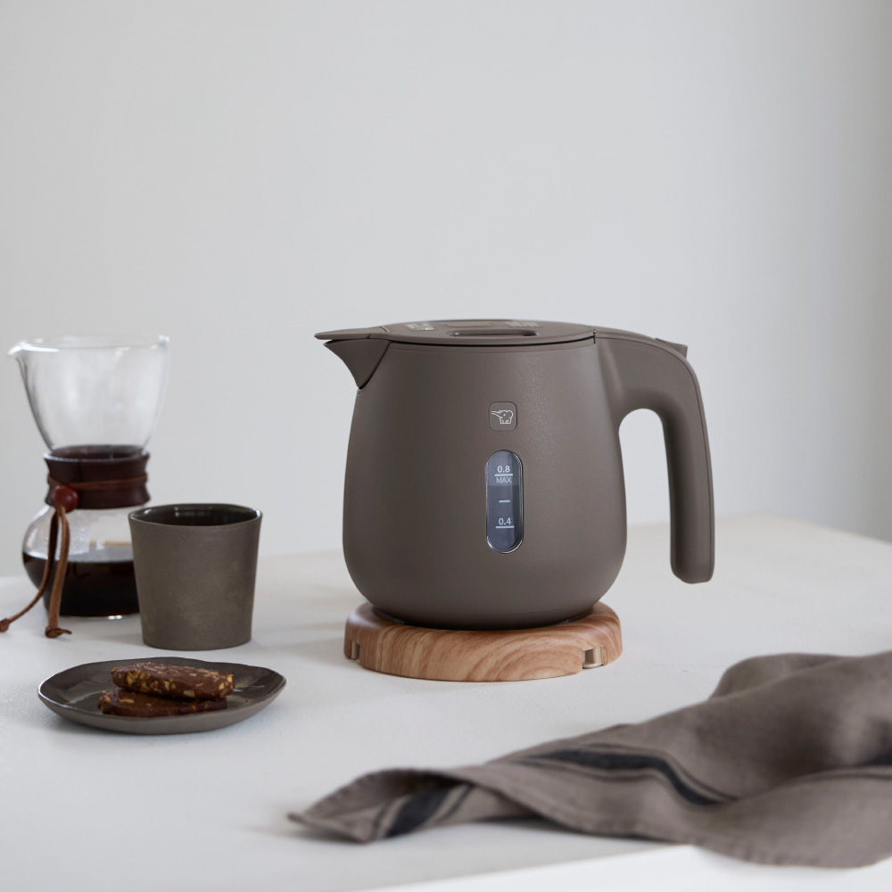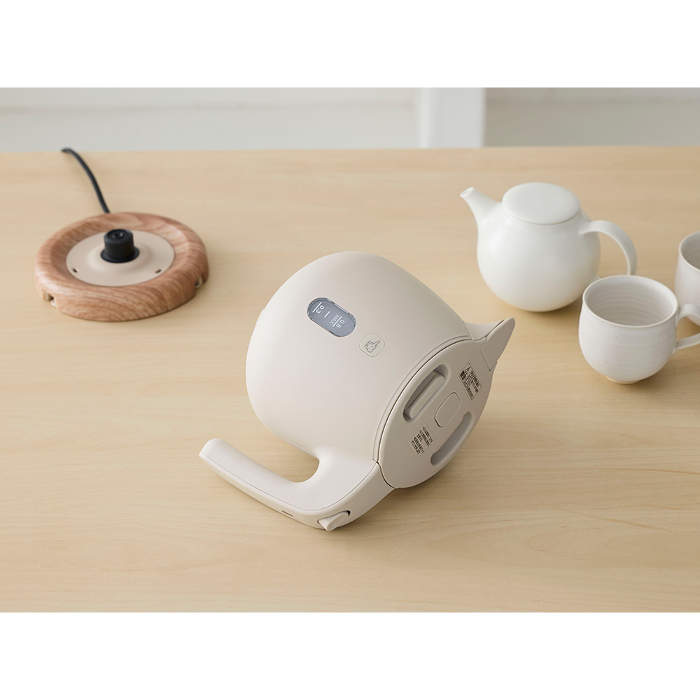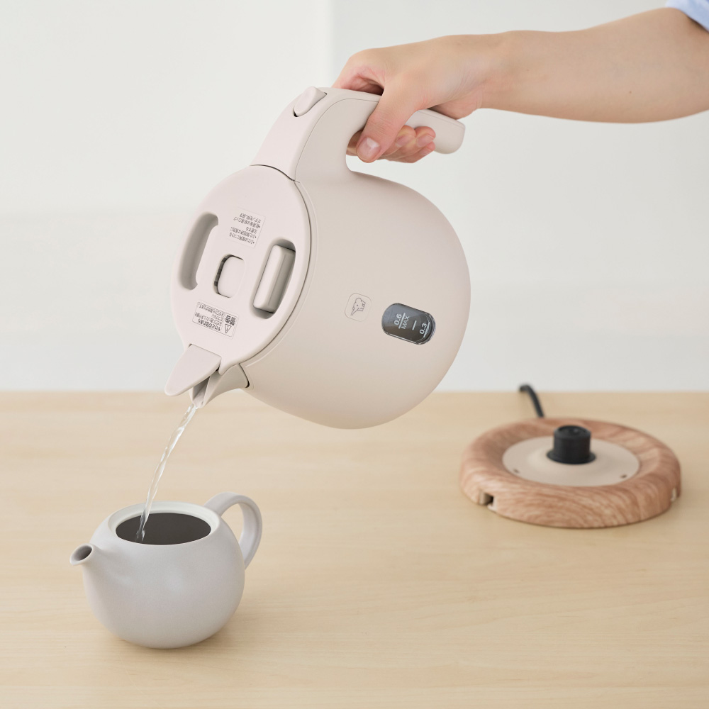 空間になじむ、柔らかなデザインと、暮らしにちょうどいい、コンパクトなサイズ感。もしもの時に備えた安全設計に清潔性をプラスしたケトル。暮らしに温もりを添える雑貨のようなオシャレなデザイン毎日使う電気ケトルは、見た目にもこだわりたい。温かみのあるカラーにころんとしたボディ。コンパクトなサイズ感で、ちょうどいいサイズです。●インテリアになじむ木目調の電源プレート●丸みを帯びた柔らかなフォルム。もしものシーンに備える優しい電気ケトル●(※1※2)倒れてもお湯がこぼれにくい構造です。※1:ロック状態になっていても、本体を傾けたり倒したりすると、注ぎ口からお湯が流れ出る恐れがあります。※2:ふたがしっかりと閉まっていることをご確認ください。●本体二重構造本体が熱くなりにくいから、本体に手を添えて注げます。(本体接続部は熱くなります)●沸騰を検知して自動電源オフ●空焚きを検知して自動電源オフの空焚き防止●給湯ロックボタンで「自動でロック」●注ぎ口から出る蒸気を減らず「蒸気セーブ構造」