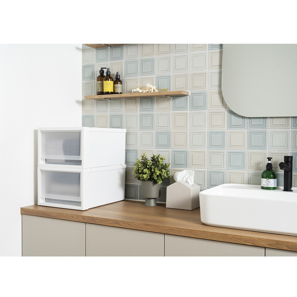 【ランドリーに】洗面台の横にも置きやすいサイズ。タオルの収納に便利です。 ※写真は高さ20cmタイプです。